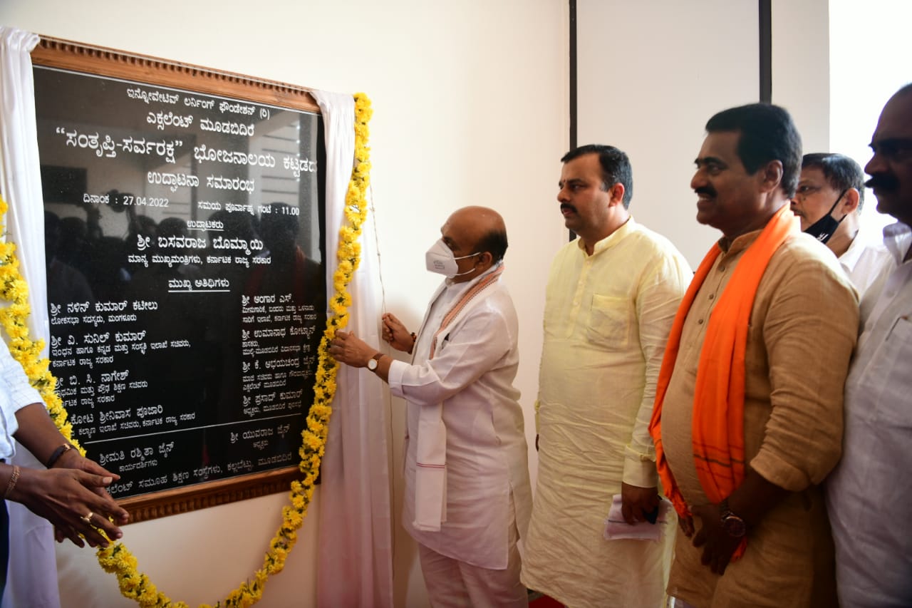 ಮಂಗಳೂರು: ಮೂಡುಬಿದಿರೆಯ ಎಕ್ಸಲೆಂಟ್ ಕಾಲೇಜಿನಲ್ಲಿ ನೂತನವಾಗಿ ನಿರ್ಮಾಣಗೊಂಡಿರುವ ಅನ್ನ ದಾಸೋಹ ಕಟ್ಟಡವನ್ನು ಮುಖ್ಯಮಂತ್ರಿ ಬಸವರಾಜ ಬೊಮ್ಮಾಯಿ ಅವರು ಬುಧವಾರ ಉದ್ಘಾಟಿಸಿದರು.