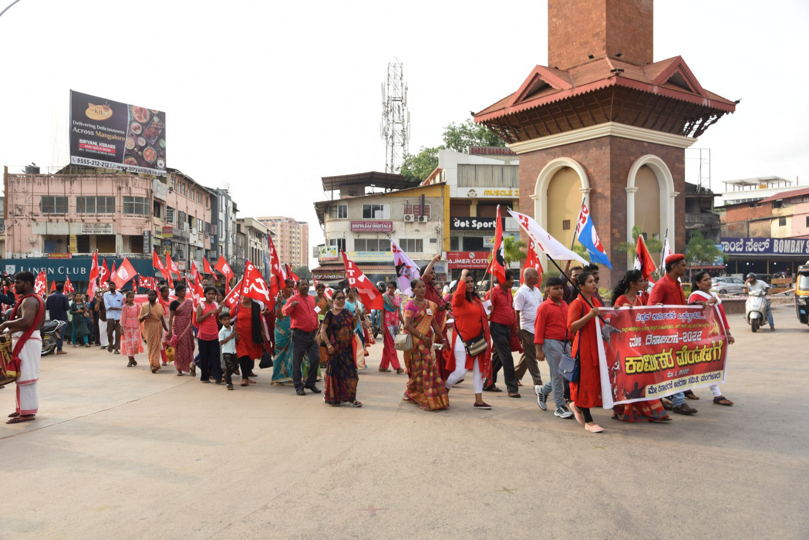 ಕಾರ್ಮಿಕ ವರ್ಗದ ಹಕ್ಕುಗಳ ರಕ್ಷಣೆಗಾಗಿ, ಪರ್ಯಾಯ ಜನಪರ ನೀತಿಗಳಿಗಾಗಿ ಎಂಬ ಘೋಷಣೆಯೊಂದಿಗೆ ಕಾರ್ಮಿಕ ದಿನಾಚರಣೆಯ ಅಂಗವಾಗಿ ಱಮೇ ದಿನಾಚರಣಾ ಸಮಿತಿೞಯ ವತಿಯಿಂದ ರವಿವಾರ ನಗರದ ಆರ್ಟಿಒ- ಸ್ಟೇಟ್ಬ್ಯಾಂಕ್-ರಾವ್ ಆ್ಯಂಡ್ ರಾವ್ ಸರ್ಕಲ್ ಮೂಲಕ ಕ್ಲಾಕ್ ಟವರ್ವರೆಗೆ ಕಾರ್ಮಿಕರ ಆಕರ್ಷಕ ಮೆರವಣಿಗೆ ನಡೆಯಿತು. ಕೆಂಪಂಗಿ ಧರಿಸಿದ ಕಾರ್ಮಿಕರು ಘೋಷಣೆಗಳನ್ನು ಕೂಗಿ ಜನರ ಗಮನ ಸೆಳೆದರು. ಬ್ಯಾಂಡ್ಗಳ ಅಬ್ಬರವು ಮೆರವಣಿಗೆಗೆ ಮೆರಗು ನೀಡಿತು. ಬಳಿಕ ಕ್ಲಾಕ್ ಟವರ್ ಬಳಿ ಬಹಿರಂಗ ಸಭೆ ನಡೆಯಿತು.