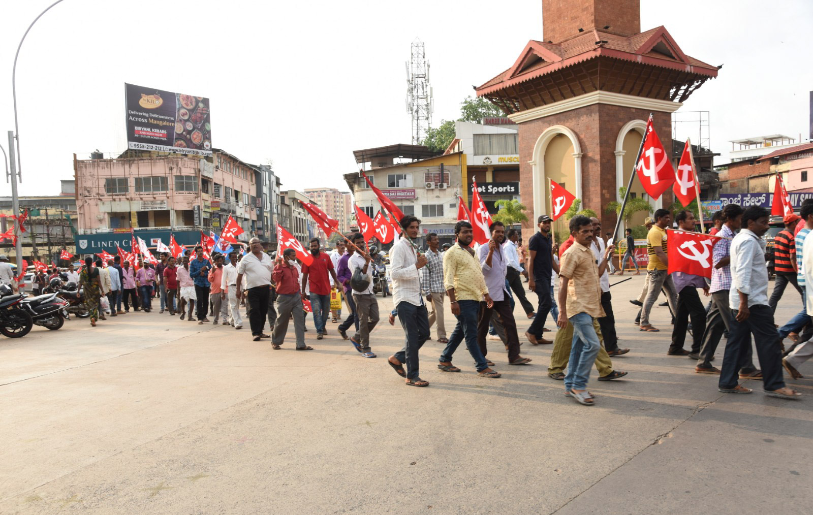ಸಿಐಟಿಯು ದ.ಕ.ಜಿಲ್ಲಾ ಪ್ರಧಾನ ಕಾರ್ಯದರ್ಶಿ ಸುನೀಲ್ ಕುಮಾರ್ ಬಜಾಲ್ ಪ್ರಾಸ್ತಾವಿಕವಾಗಿ ಮಾತನಾಡಿ ದರು. ಸಭೆಯನ್ನುದ್ದೇಶಿಸಿ ಬ್ಯಾಂಕ್ ಅಧಿಕಾರಿಗಳ ಅಖಿಲ ಭಾರತ ಮುಖಂಡರಾದ ರಾಘವ ಕೆ, ಸುರೇಶ್ ಹೆಗ್ಡೆ, ಬೀಡಿ ಕಾರ್ಮಿಕರ ನಾಯಕಿ ಜಯಂತಿ ಶೆಟ್ಟಿ, ವಿಮಾ ನೌಕರರ ಸಂಘದ ನಾಯಕ ಅಲ್ಬನ್ ಮಸ್ಕರೇನಸ್, ಬ್ಯಾಂಕ್ ನೌಕರರ ಸಂಘಟನೆಯ ಮುಖಂಡ ಪುರುಷೋತ್ತಮ ಪೂಜಾರಿ, ವಕೀಲರ ಸಂಘದ ನಾಯಕ ಯಶವಂತ ಮರೋಳಿ ಮಾತನಾಡಿದರು.