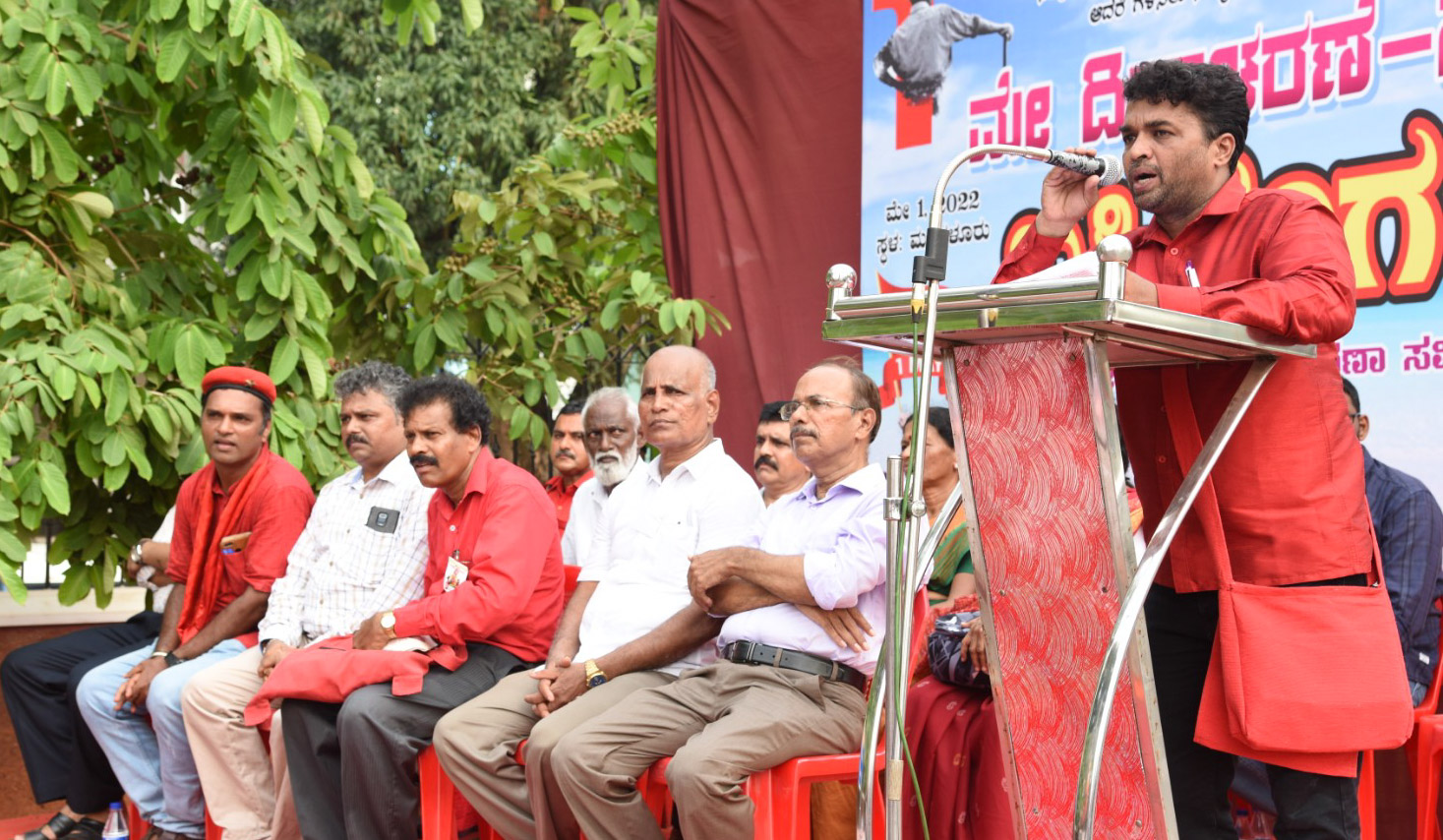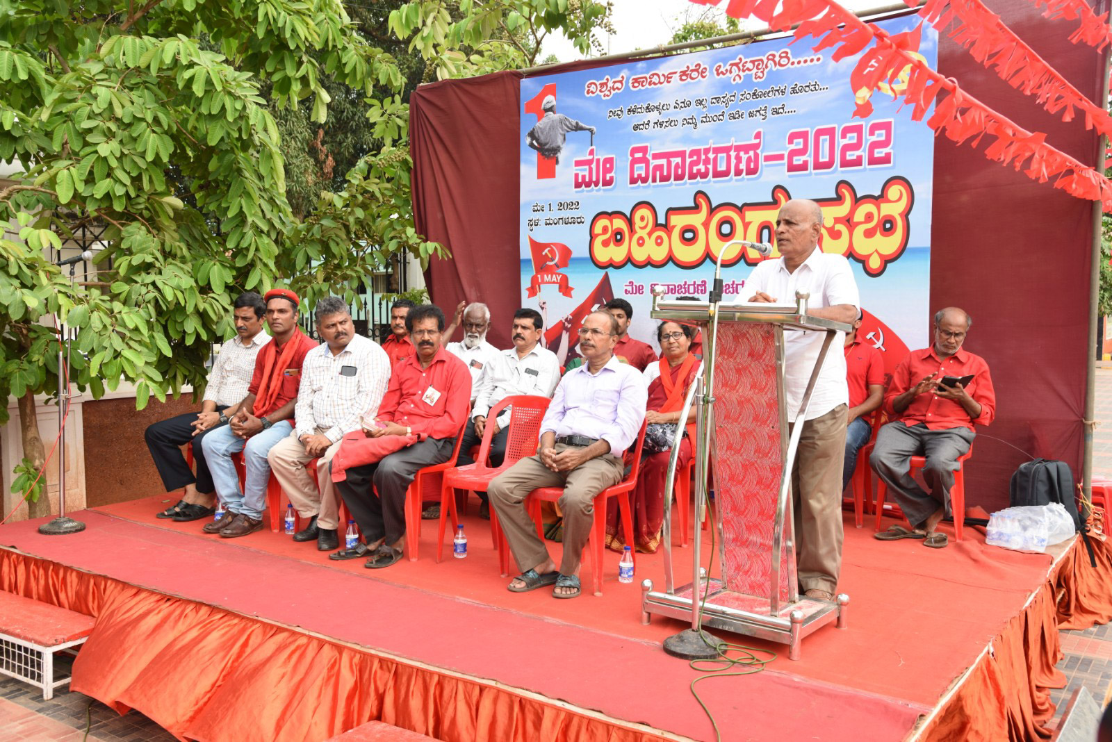 ವಿಶ್ವ ಕಾರ್ಮಿಕ ದಿನಾಚರಣೆಯ ಅಂಗವಾಗಿ ಎಡಸಂಘಟನೆಗಳ ನೇತೃತ್ವದಲ್ಲಿ ರವಿವಾರ ನಗರದ ಕ್ಲಾಕ್ ಟವರ್ ಬಳಿ ನಡೆದ ಬಹಿರಂಗ ಸಭೆಯನ್ನು ಉದ್ದೇಶಿಸಿ ಅವರು ಮಾತನಾಡಿದರು.