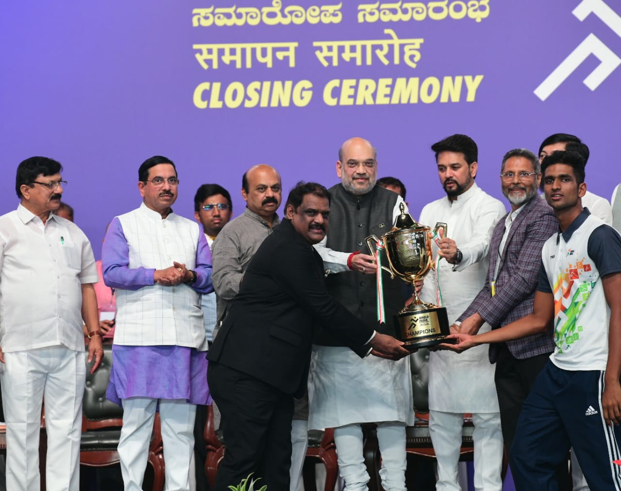 ಕಾರ್ಯಕ್ರಮದಲ್ಲಿ ಮುಖ್ಯ ಅತಿಥಿಗಳಾಗಿ ಆಗಮಿಸಿದ್ದ ಕೇಂದ್ರ ಗೃಹ ಸಚಿವ ಅಮಿತ್ ಶಾ ಅವರು, ಸಮಗ್ರ ಚಾಂಪಿಯನ್ ಪಟ್ಟ ಗೆದ್ದಿದ್ದ ಜೈನ್ ವಿಶ್ವವಿದ್ಯಾನಿಲಯ ತಂಡಕ್ಕೆ ಟ್ರೋಫಿಯನ್ನು ನೀಡಿ ಗೌರವಿಸಿದರು.