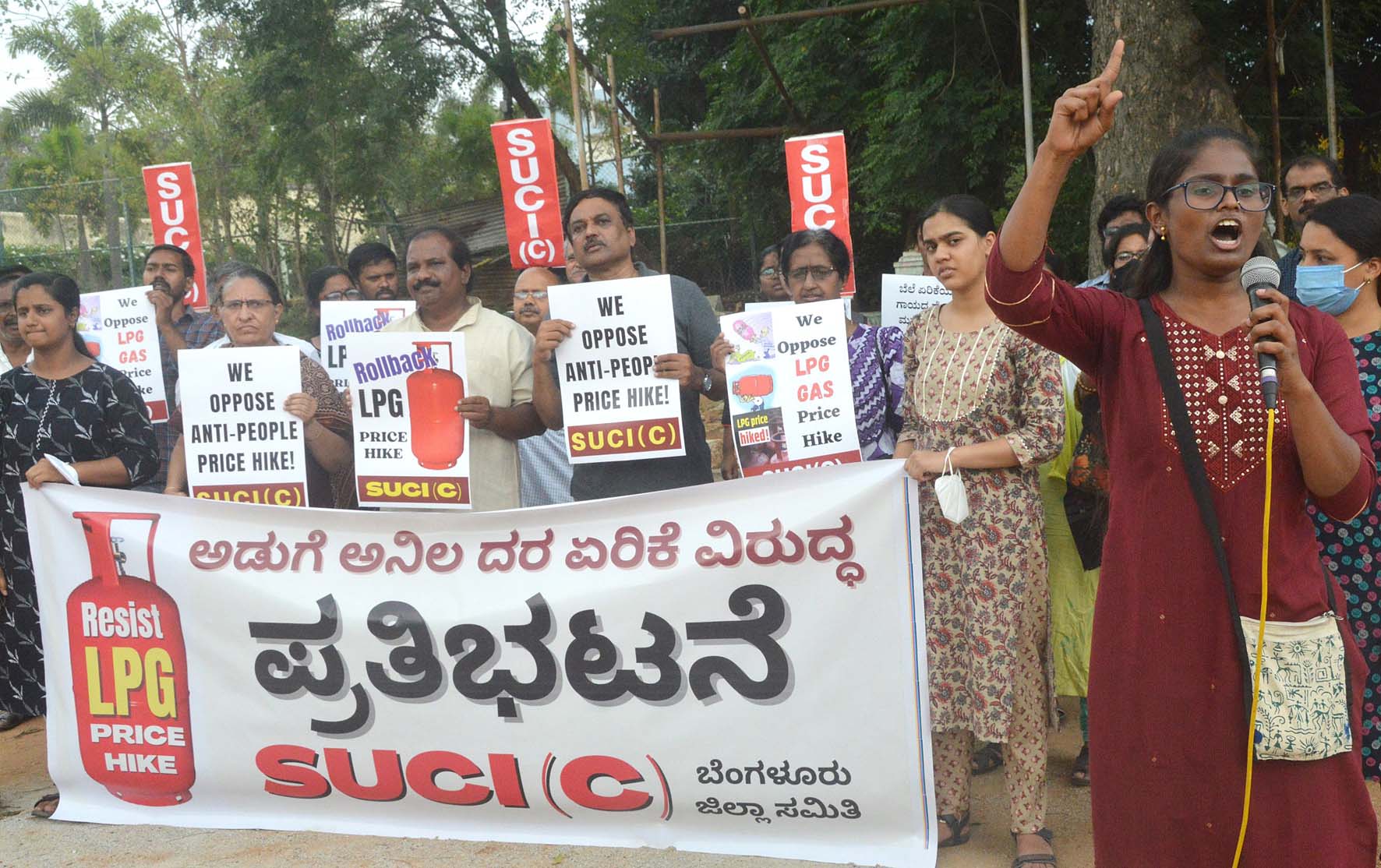 ಬೆಂಗಳೂರು, ಮೇ 7: ಕೇಂದ್ರ ಸರಕಾರ ದಿನೆ ದಿನೆ ಎಲ್ಪಿಜಿ ದರ ಏರಿಕೆ ಮಾಡುತ್ತಿರುವ ಕ್ರಮ ಖಂಡಿಸಿ ಸೋಷಲಿಸ್ಟ್ ಯೂನಿಟಿ ಸೆಂಟರ್ ಆಫ್ ಇಂಡಿಯಾ(ಕಮ್ಯುನಿಸ್ಟ್) ಸದಸ್ಯರು ಬೃಹತ್ ಪ್ರತಿಭಟನೆ ನಡೆಸಿದರು.