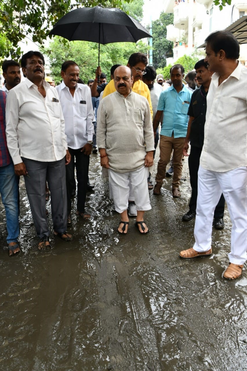 ಮಳೆಯಿಂದ ತೊಂದರೆಗೀಡಾಗಿರುವ ಆರ್.ಆರ್.ನಗರದ ಐಡಿಯಲ್ಸ್ ಬಡಾವಣೆಗೆ ಆಗಮಿಸಿ ಪರಿಶೀಲಿಸಿದ ಸಿಎಂ ಬೊಮ್ಮಾಯಿ‌ ಬಳಿಕ ಮಾಧ್ಯಮದವರೊಂದಿಗೆ ಮಾತನಾಡುತ್ತಿದ್ದರು.
