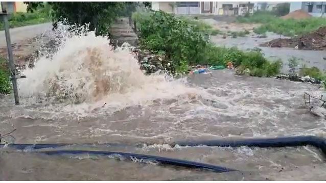 ಭಾರೀ ಮಳೆಯಿಂದಾಗಿ ರತ್ನಾಕರ ಲೇಔಟ್ ನ ಗಾರೆ ಚಾನೆಲ್ ತುಂಬಿದ್ದು ಜಲಪಾತದಂತೆ ಬೀಳುವ ದೃಶ್ಯ ನೋಡುಗರನ್ನು ಸೆಳೆಯುತ್ತಿದೆ.