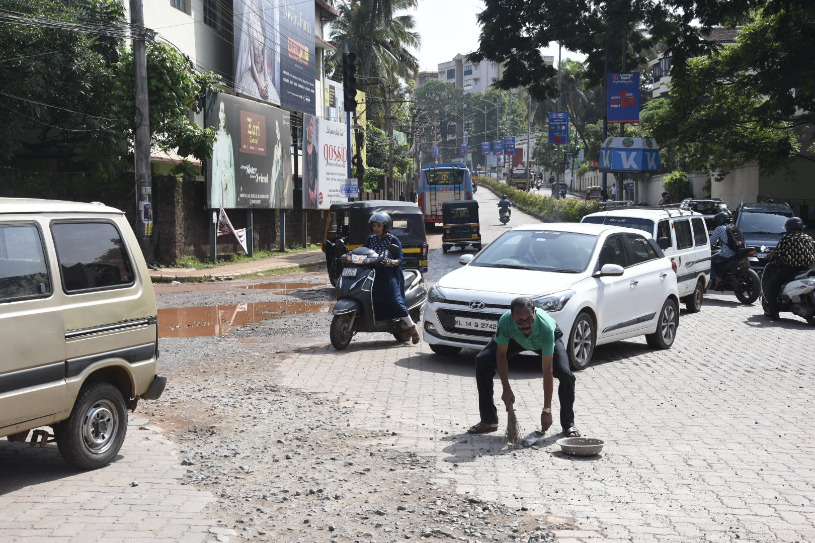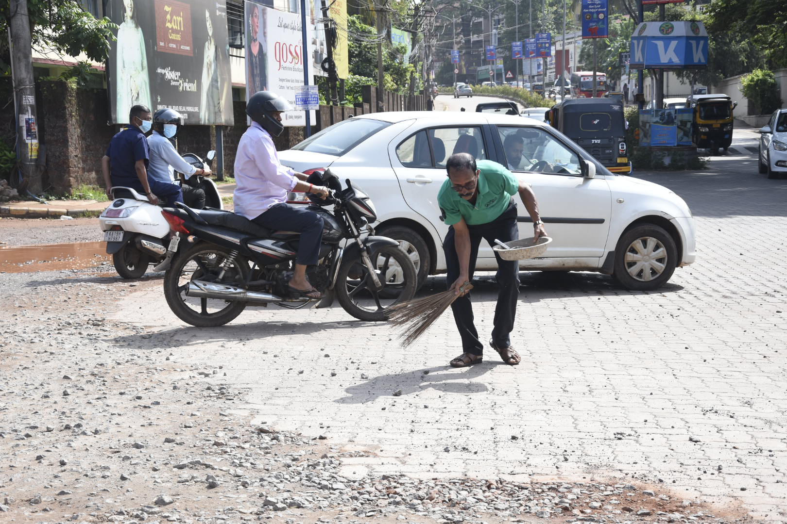 ರಸ್ತೆ ಕಾಮಗಾರಿಯ ಹಿನ್ನೆಲೆಯಲ್ಲಿ ಇಂಟರ್ ಲಾಕ್ ಮೇಲೆಲ್ಲಾ ಜಲ್ಲಿ ಹರಡಿರುವ ಕಾರಣ ವಾಹನಗಳ ಸಂಚಾರ, ರಸ್ತೆಯಲ್ಲಿ ನಡೆದಾಡುತ್ತಿರುವವರು ತೊಂದರೆ ಅನುಭವಿಸುತ್ತಿದ್ದಾರೆಂದು ಆಕ್ಷೇಪಿಸಿ ಸಾಮಾಜಿಕ ಕಾರ್ಯಕರ್ತ ರಾದ ಜೆರಾರ್ಡ್ ಟವರ್ಸ್ ಅವರು ಇಂದು ಕೈಯಲ್ಲಿ ಪೊರಕೆ ಹಿಡಿದು ಜಲ್ಲಿ ಗುಡಿಸುವ ಮೂಲಕ ಗಮನ ಸೆಳೆದರು.