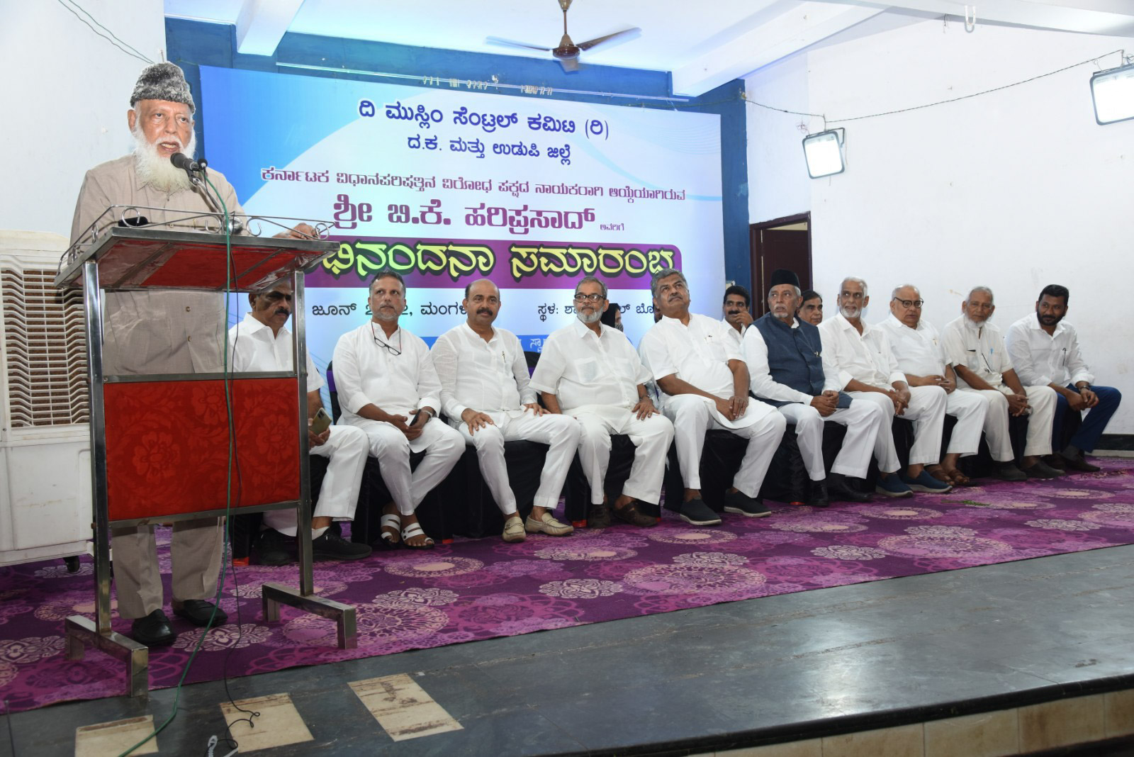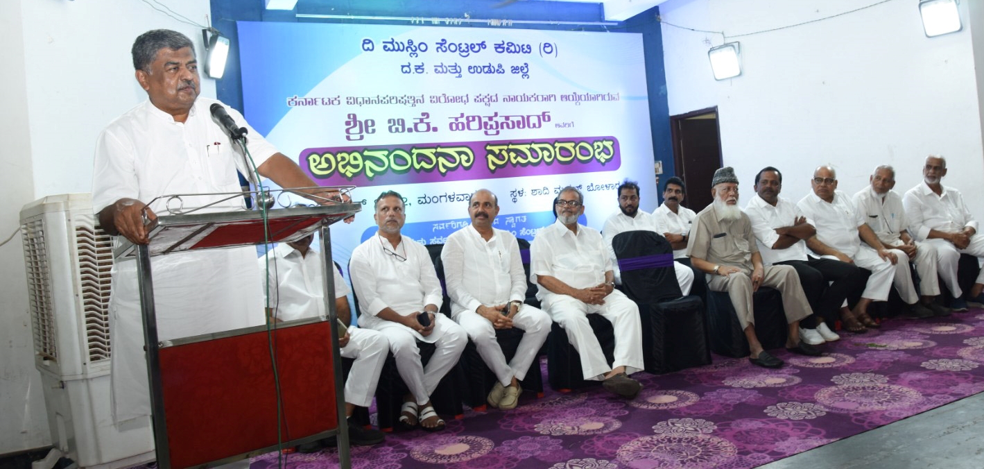 ದಕ್ಷಿಣ ಕನ್ನಡ ಮತ್ತು ಉಡುಪಿ ಜಿಲ್ಲೆಯ ಮುಸ್ಲಿಂ ಸೆಂಟ್ರಲ್ ಕಮಿಟಿ ವತಿಯಿಂದ ನಗರದ ಶಾದಿ ಮಹಲ್ ನಲ್ಲಿಂದು ರಾಜ್ಯ ವಿಧಾನ ಪರಿಷತ್ ವಿಪಕ್ಷ ನಾಯಕನಾಗಿ ಆಯ್ಕೆಗೊಂಡ (ಬಿ.ಕೆ.ಹರಿಪ್ರಸಾದ್) ಹಿನ್ನೆಲೆಯಲ್ಲಿ ಹಮ್ಮಿಕೊಂಡ ಅಭಿನಂದನಾ ಸಮಾರಂಭವನ್ನುದ್ದೇಶಿಸಿ ಅವರು ಮಾತನಾಡುತ್ತಿದ್ದರು.