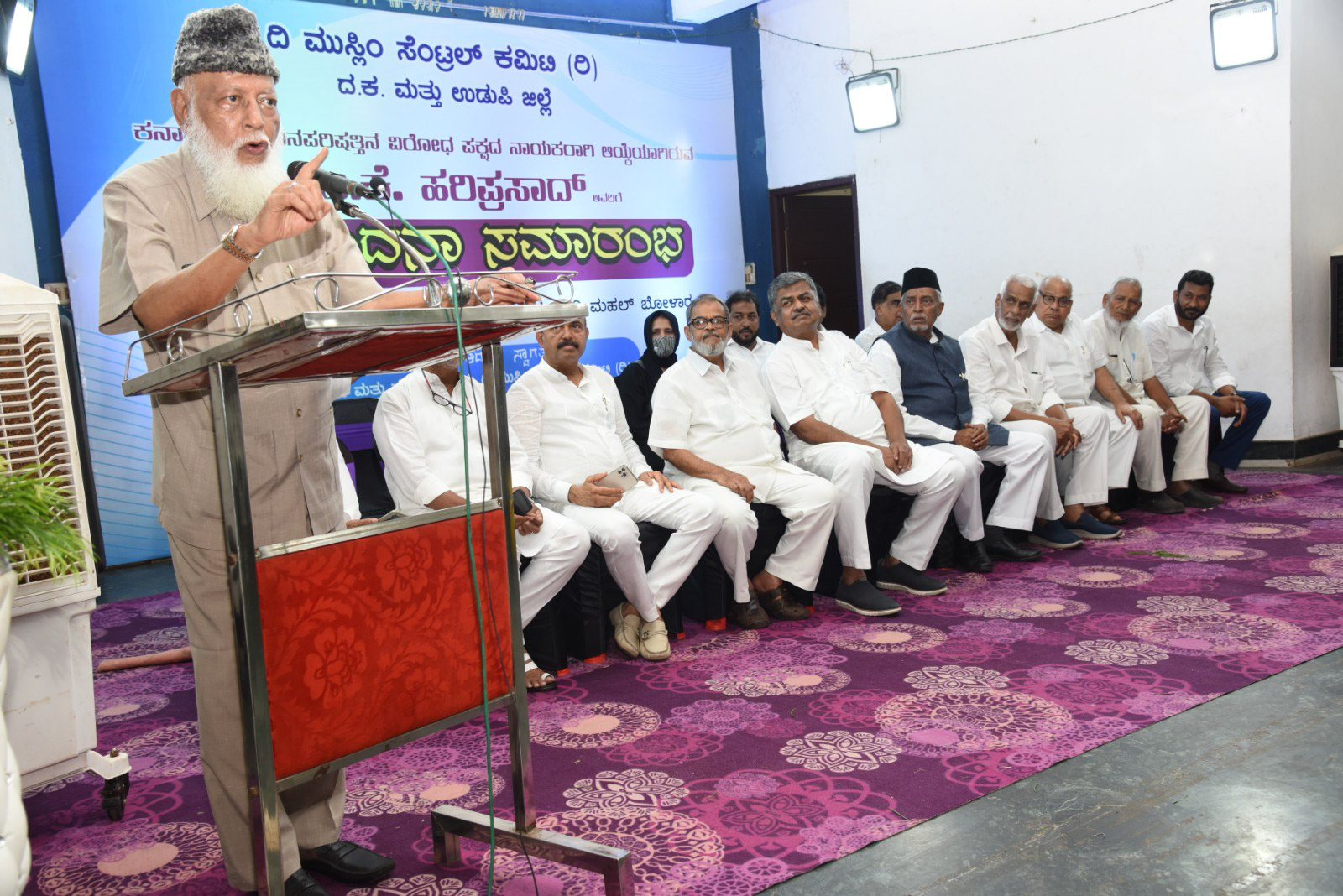 ದಕ್ಷಿಣ ಕನ್ನಡ ಮತ್ತು ಉಡುಪಿ ಜಿಲ್ಲೆಯ ಮುಸ್ಲಿಂ ಸೆಂಟ್ರಲ್ ಕಮಿಟಿ ಅಧ್ಯಕ್ಷ ಮಾಜಿ ಶಾಸಕ ಕೆ.ಎಸ್.ಮುಹಮ್ಮದ್ ಮಸೂದ್ ಸಮಾರಂಭದ ಅಧ್ಯಕ್ಷತೆ ವಹಿಸಿ ಮಾನಾಡುತ್ತಾ, ರಾಜ್ಯದಲ್ಲಿ ಅಲ್ಪಸಂಖ್ಯಾತರು, ಹಿಂದುಳಿದವರು, ಮಹಿಳೆಯರ ಹಕ್ಕುಗಳ ಮೇಲೆ ದಾಳಿ ನಡೆಯುತ್ತಿರುವ ಸಂದರ್ಭದಲ್ಲಿ ಅದರ ವಿರುದ್ಧ ಗಟ್ಟಿ ಧ್ವನಿ ಯಲ್ಲಿ ಮಾತನಾಡುತ್ತಿರುವ ಬಗ್ಗೆ ನಮಗೆ ಅಭಿಮಾನವಿದೆ. ಈ ದೇಶದಲ್ಲಿ ಹುಟ್ಟಿ ಬೆಳೆದ ಮುಸಲ್ಮಾನರನ್ನು ಪಾಕಿಸ್ತಾನ ಕ್ಕೆ ಹೋಗಿ ಎನ್ನುವವರು ಬೇಕಾದರೆ ಪಾಕಿಸ್ತಾನಕ್ಕೆ ಹೋಗಲಿ. ಮುಸಲ್ಮಾನರು ತಾಳ್ಮೆ ಕಳೆದು ಕೊಳ್ಳಬಾರದು ಎಂದ ಅವರು ಬಿ.ಕೆ.ಹರಿಪ್ರಸಾದ್ ರಂತಹ ನಾಯಕರಿಗೆ ಶುಭ ಹಾರೈಸುವುದಾಗಿ ತಿಳಿಸಿದ್ದಾರೆ.