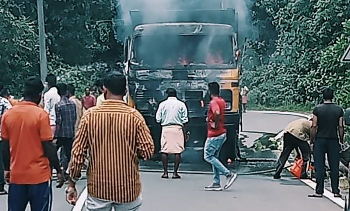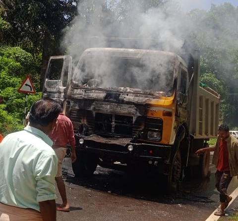 ಕಾಸರಗೋಡು : ಚಲಿಸುತ್ತಿದ್ದ ಲಾರಿ ಅಗ್ನಿಗಾಹುತಿ
