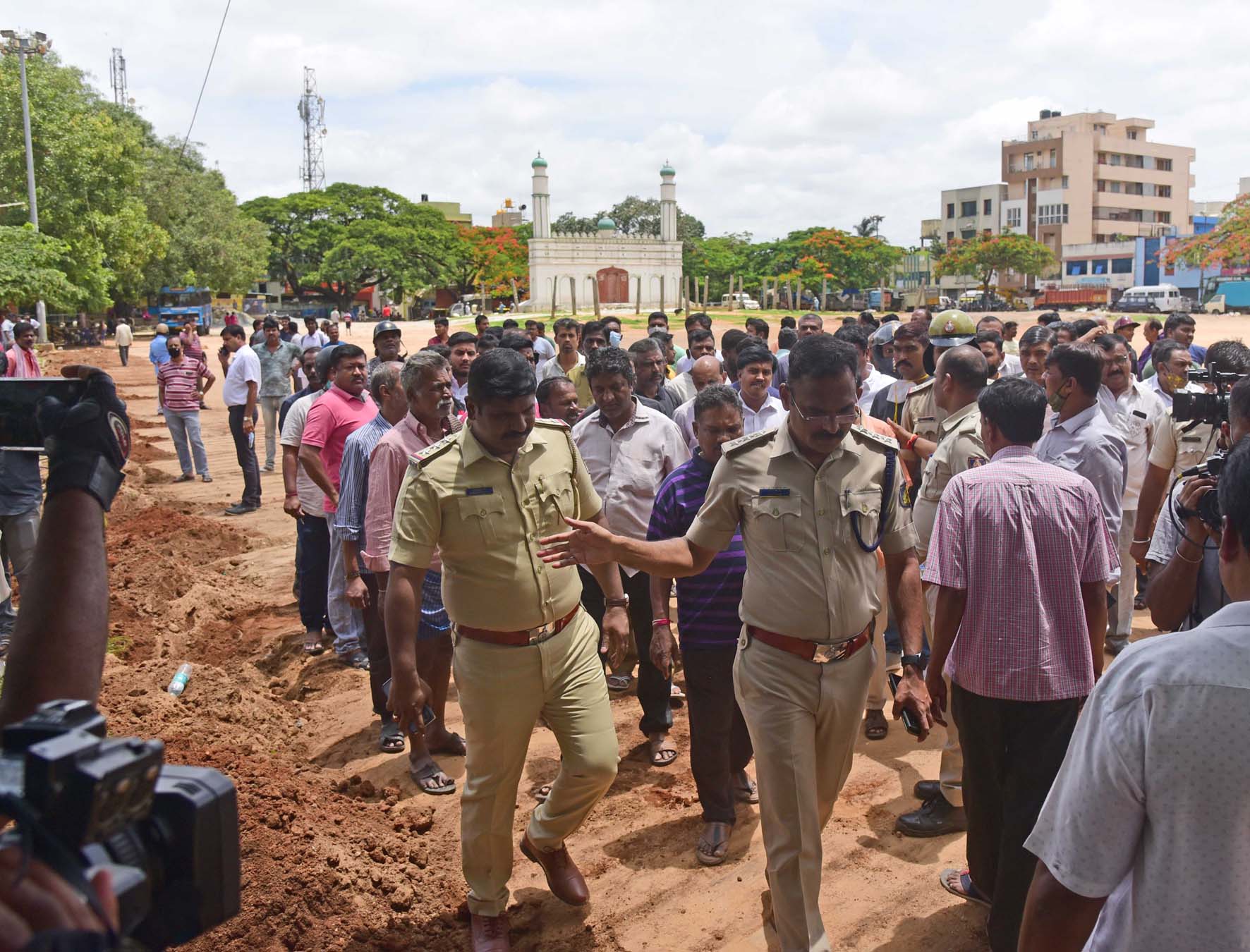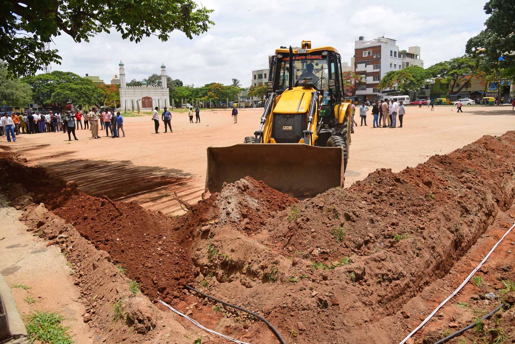 ಶನಿವಾರ ಬೆಳಗ್ಗೆ ಇಲ್ಲಿನ ಈದ್ಗಾ ಮೈದಾನದ ಬಳಿ ಆಗಮಿಸಿದ ಪೊಲೀಸರು, ಖಾಸಗಿ ವ್ಯಕ್ತಿಗಳಿಂದ ಸಿಸಿ ಟಿವಿ ಅಳವಡಿಕೆಗೆ ಮುಂದಾದರು. ಇದಕ್ಕಾಗಿ ಜೆಸಿಬಿ ಮೂಲಕ ಮೈದಾನದಲ್ಲಿ ಕಾರ್ಯಾಚರಣೆ ಕೈಗೆತ್ತಿಕೊಂಡಿದ್ದರು.