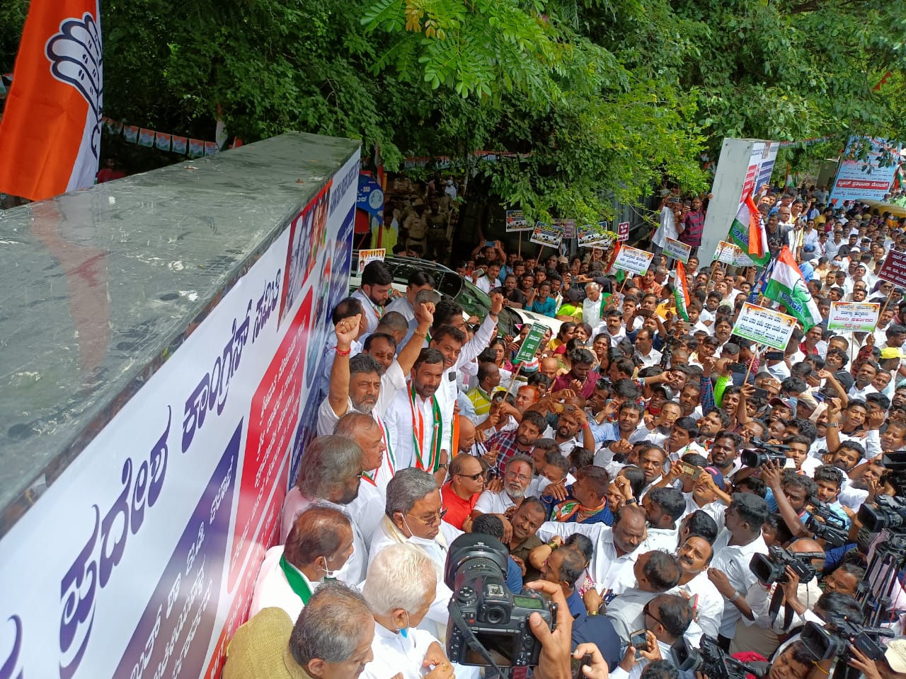 ವಿಧಾನಸಭೆ ವಿಪಕ್ಷ ನಾಯಕ ಸಿದ್ದರಾಮಯ್ಯ, ಕೆಪಿಸಿಸಿ ಅಧ್ಯಕ್ಷ ಡಿ.ಕೆ. ಶಿವಕುಮಾರ್, ಕೆಪಿಸಿಸಿ ಕಾರ್ಯಾಧ್ಯಕ್ಷ ರಾಮಲಿಂಗಾರೆಡ್ಡಿ, ಯುವ ಕಾಂಗ್ರೆಸ್ ಅಧ್ಯಕ್ಷ ಮೊಹಮ್ಮದ್ ಹಾರೀಸ್ ನಲಪಾಡ್, ಎಐಸಿಸಿ ಪದಾಧಿಕಾರಿಗಳು, ಪಕ್ಷದ ಶಾಸಕರು ಸೇರಿದಂತೆ ಅನೇಕ ನಾಯಕರು ಈ ಪ್ರತಿಭಟನೆಯಲ್ಲಿ ಭಾಗವಹಿಸಿದ್ದರು.