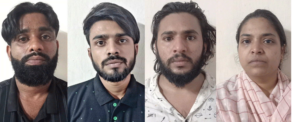 ಬಂಧಿತ ಆರೋಪಿಗಳನ್ನು ಉಪ್ಪಳದ ಮುಹಮ್ಮದ್ ರಮೀಝ್ (24) ಮತ್ತು ಅಬ್ದುಲ್ ರವೂಫ್ (35), ಶಿರಿಯಾದ ಮೊಹಿದ್ದೀನ್ ರಾಶೀದ್(24), ಬೆಂಗಳೂರಿನ ಮಡಿವಾಳದ ಸಬಿತಾ ಯಾನೆ ಸಮೀರಾ (25) ಎಂದು ಗುರುತಿಸಲಾಗಿದೆ.