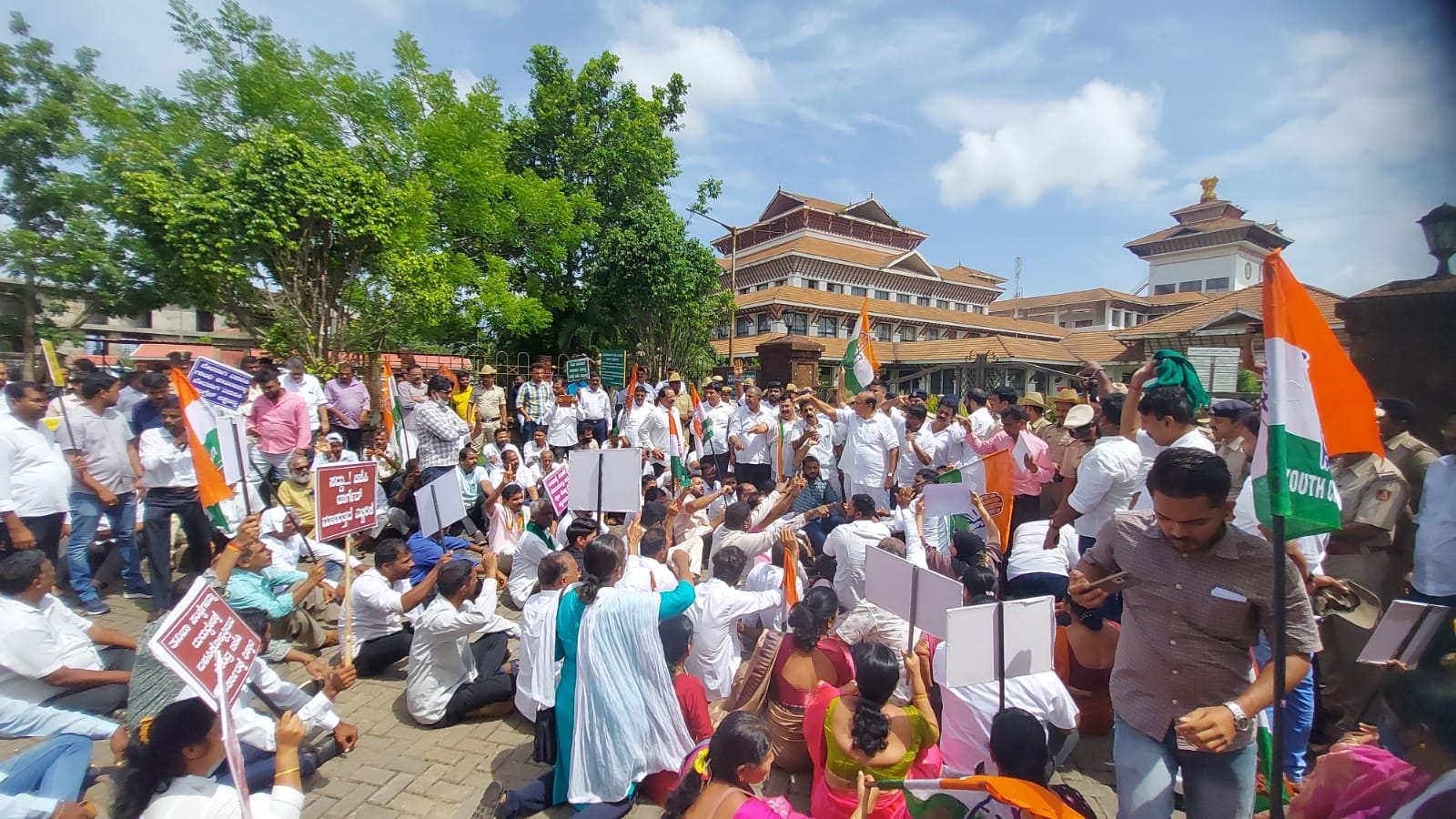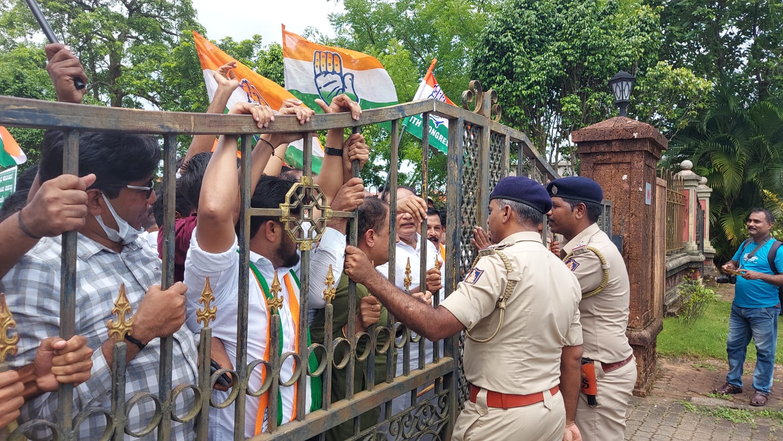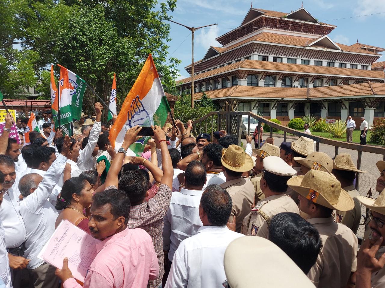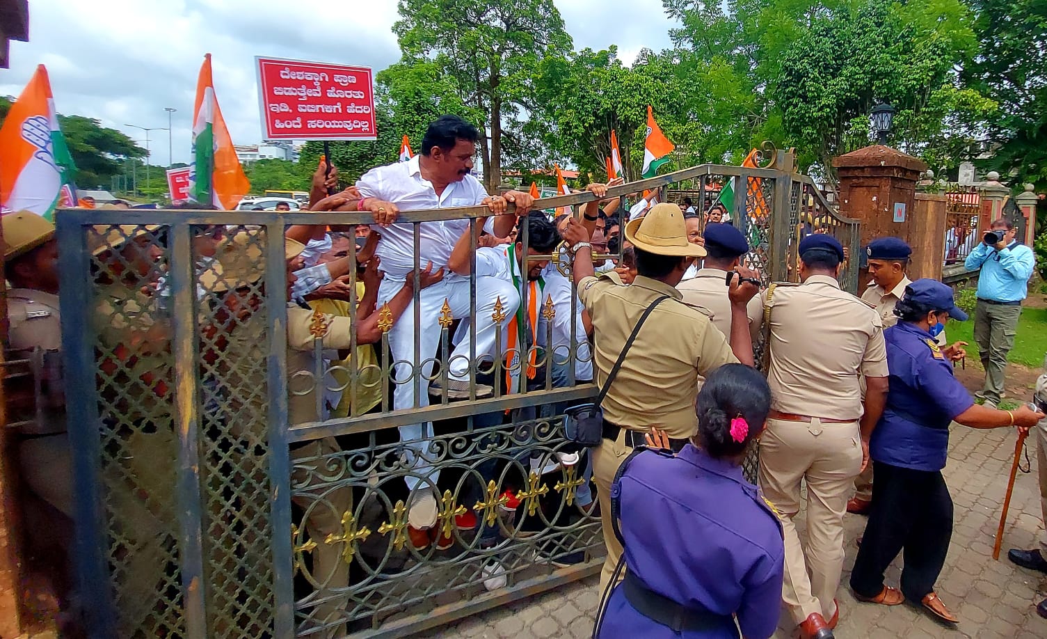 ಬಿಜೆಪಿ ಸರಕಾರದ ವಿರುದ್ಧ ತೀವ್ರ ಆಕ್ರೋಶ ವ್ಯಕ್ತಪಡಿಸಿದ ಪ್ರತಿಭಟನಾಕಾರರು ಗೇಟು ಹತ್ತಿ ಒಳಪ್ರವೇಶಿಸಲು ಯತ್ನಿಸಿದರು. ಬಳಿಕ ಸ್ಥಳಕ್ಕೆ ಆಗಮಿಸಿದ ಅಪರ ಜಿಲ್ಲಾಧಿಕಾರಿ ವೀಣಾ ಅವರಿಗೆ ಮನವಿ ಸಲ್ಲಿಸಲಾಯಿತು.
