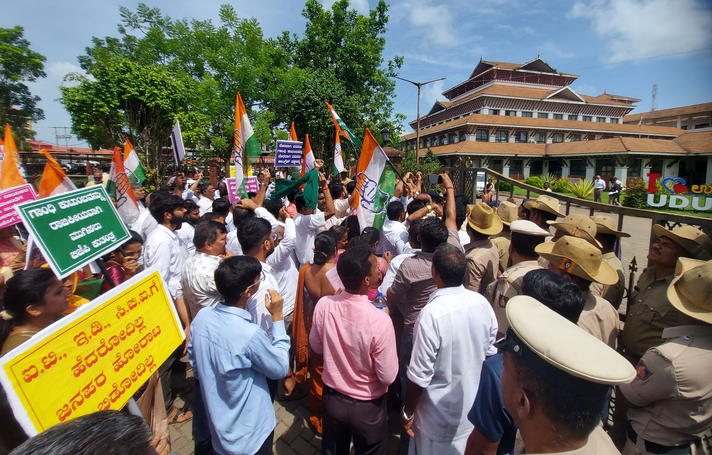 ಮಣಿಪಾಲದ ಕಾಯಿನ್ ಸರ್ಕಲ್ನಿಂದ ಹೊರಟ ಪ್ರತಿಭಟನಾ ಮೆರವಣಿಗೆಯಲ್ಲಿ ನೂರಾರು ಕಾರ್ಯಕರ್ತರು ಭಾಗವಹಿಸಿ ಬಿಜೆಪಿ ಸರಕಾರದ ವಿರುದ್ಧ ಘೋಷಣೆಗಳನ್ನು ಕೂಗುತ್ತ ಆಕ್ರೋಶ ವ್ಯಕ್ತಪಡಿಸಿದರು. ಅಲ್ಲಿಂದ ಮೆರವಣಿಗೆ ಜಿಲ್ಲಾಧಿಕಾರಿ ಕಚೇರಿ ಆಗಮಿಸಿದ್ದು, ಈ ವೇಳೆ ಪ್ರತಿಭಟನಕಾರರು ಜಿಲ್ಲಾಧಿಕಾರಿ ಕಚೇರಿಗೆ ಮುತ್ತಿಗೆ ಹಾಕಲು ಯತ್ನಿಸಿದರು.