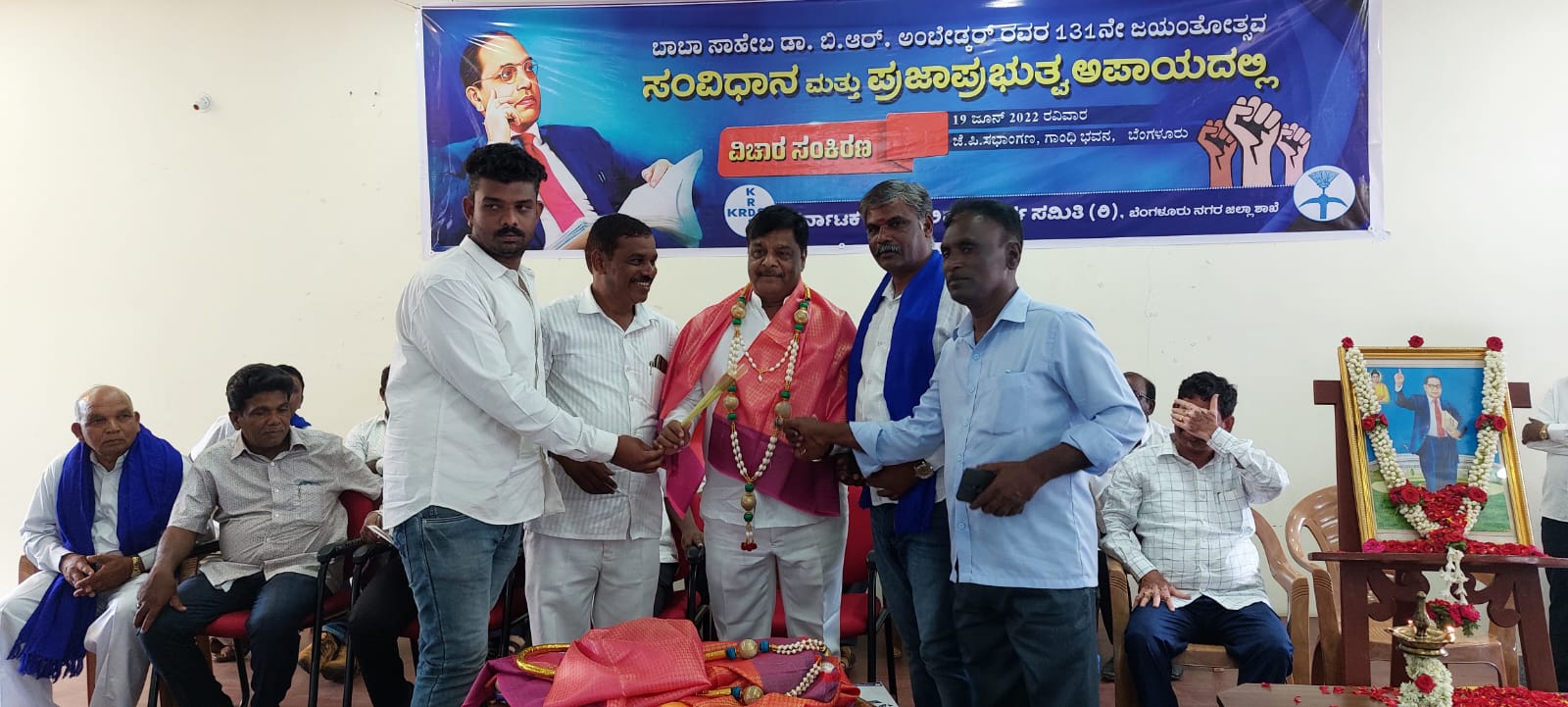 ರವಿವಾರ ದಸಂಸ ನಗರದ ಗಾಂಧಿ ಭವನದಲ್ಲಿ ಆಯೋಜಿಸಿದ್ದ ‘ಸಂವಿಧಾನ ಮತ್ತು ಪ್ರಜಾಪ್ರಭುತ್ವ ಅಪಾಯದಲ್ಲಿ’ ಎಂಬ ವಿಷಯದ ಕುರಿತ ವಿಚಾರ ಸಂಕಿರಣದಲ್ಲಿ ಮಾತನಾಡಿದ ಅವರು, ಧಾರ್ಮಿಕ ಹಕ್ಕನ್ನು ಕಡೆಗಣಿಸಿ, ಸುಗ್ರೀವಾಜ್ಞೆಯ ಮೂಲಕ ಮತಾಂತರ ನಿಷೇಧಕಾಯ್ದೆಯನ್ನು ಜಾರಿಗೆ ತಂದಿದ್ದಾರೆ. ಹಾಗೆಯೇ ಗೋಹತ್ಯೆ ನಿಷೇಧ ಕಾಯ್ದೆಯನ್ನು ಜಾರಿಗೊಳಿಸಿದ್ದಾರೆ. ಮುಸ್ಲಿಮರ ಪರ ದ್ವನಿ ಎತ್ತಿದರೆ ಹಿಂದೂ ವಿರೋಧಿಗಳು ಎಂಬ ಪಟ್ಟ ಕಟ್ಟುತ್ತಿದ್ದಾರೆ' ಎಂದು ಆತಂಕ ವ್ಯಕ್ತಪಡಿಸಿದರು.