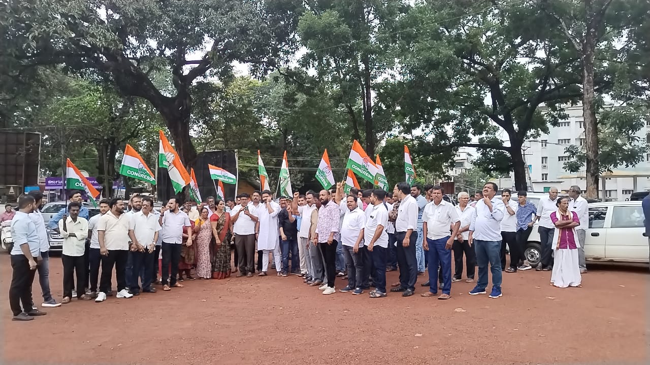ಪ್ರತಿಭಟನೆ ನಿರತ ಕಾಂಗ್ರೆಸ್ ಪಕ್ಷದ ಕಾರ್ಯಕರ್ತರನ್ನು ಪೊಲೀಸರು ವಶಕ್ಕೆ ಪಡೆದು ಬಳಿಕ ಬಿಡುಗಡೆಗೊಳಿಸಿದರು.