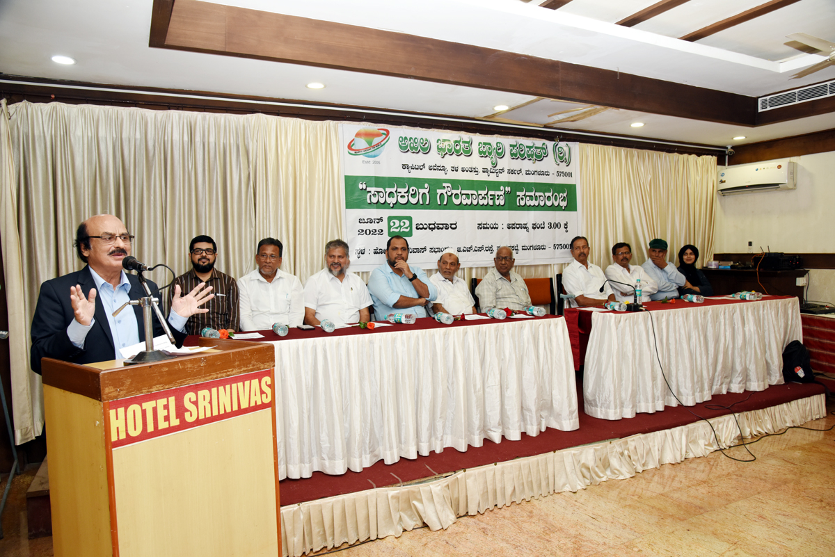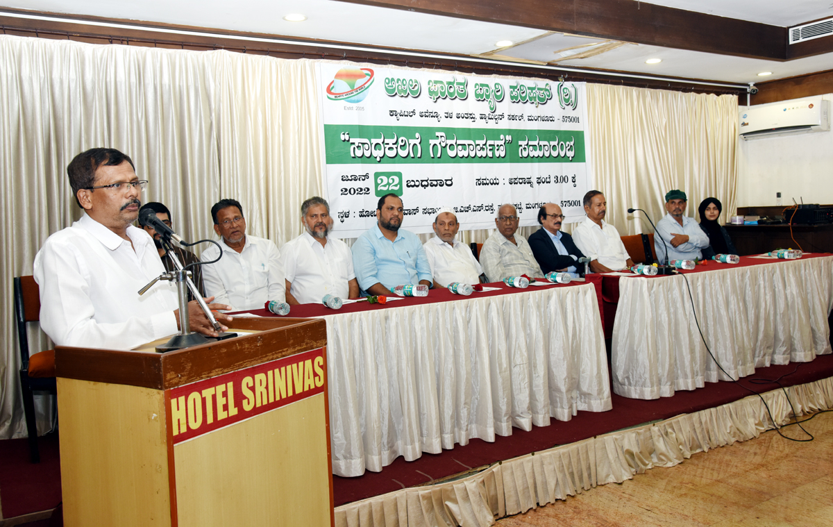 ಅಖಿಲ ಭಾರತ ಬ್ಯಾರಿ ಪರಿಷತ್ (ರಿ) ಇದರ ವತಿಯಿಂದ ನಗರದ ಶ್ರೀನಿವಾಸ ಹೊಟೇಲಿನ ಸಭಾಂಗಣದಲ್ಲಿ ಬುಧವಾರ ನಡೆದ ಸಾಧಕರಿಗೆ ಗೌರವಾರ್ಪಣೆ ಕಾರ್ಯಕ್ರಮದಲ್ಲಿ ಅವರು ಸಾಧಕರನ್ನು ಗೌರವಿಸಿದ ಬಳಿಕ ಮಾತನಾಡಿದರು.
