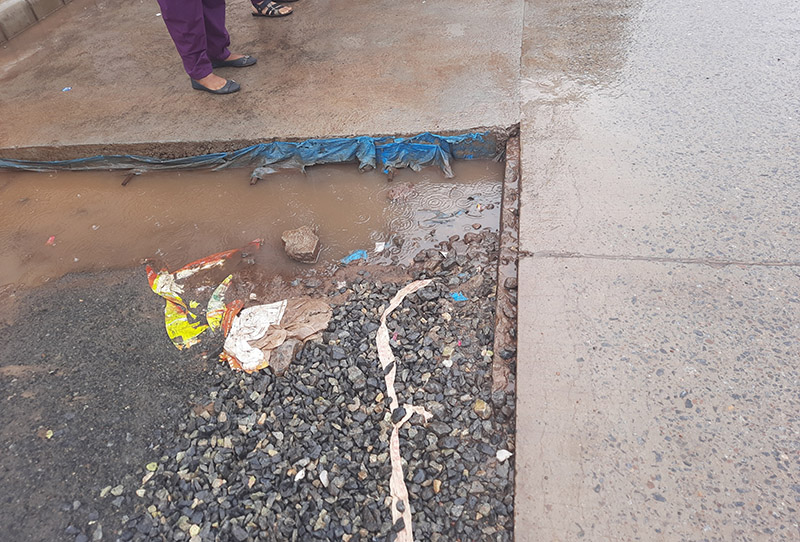 ಕಾಮಗಾರಿ ಪೂರ್ಣಗೊಂಡ ಸ್ಥಳಗಳಲ್ಲಿ ಗುಂಡಿಗಳನ್ನು ಕೇವಲ ಮಣ್ಣಿನಿಂದ ಮುಚ್ಚಲಾಗಿದ್ದು, ಮಳೆಗಾಲದಲ್ಲಿ ಅದು ಇಡೀ ರಸ್ತೆಯನ್ನು ಕೊಚ್ಚೆಯಾಗಿಸುತ್ತವೆ.