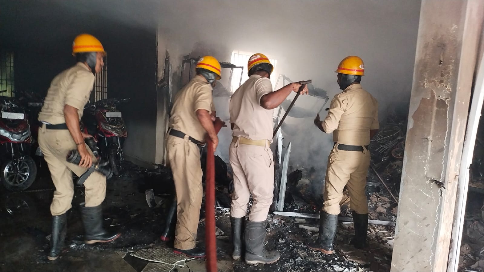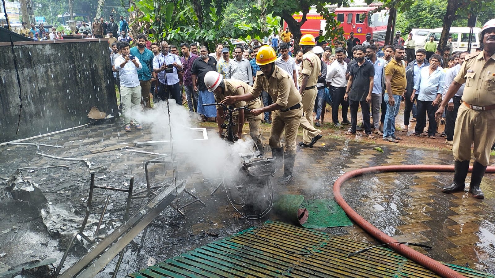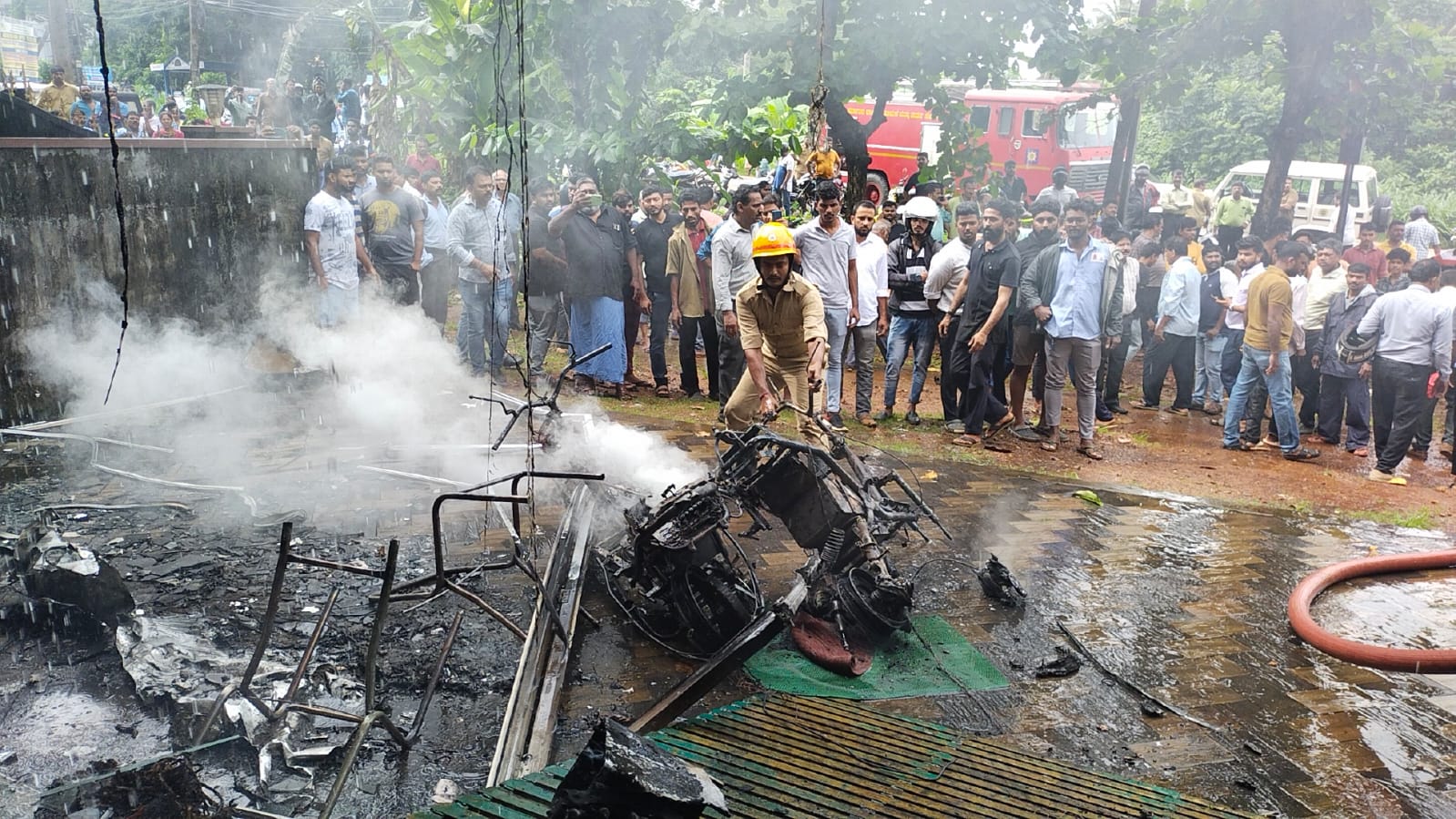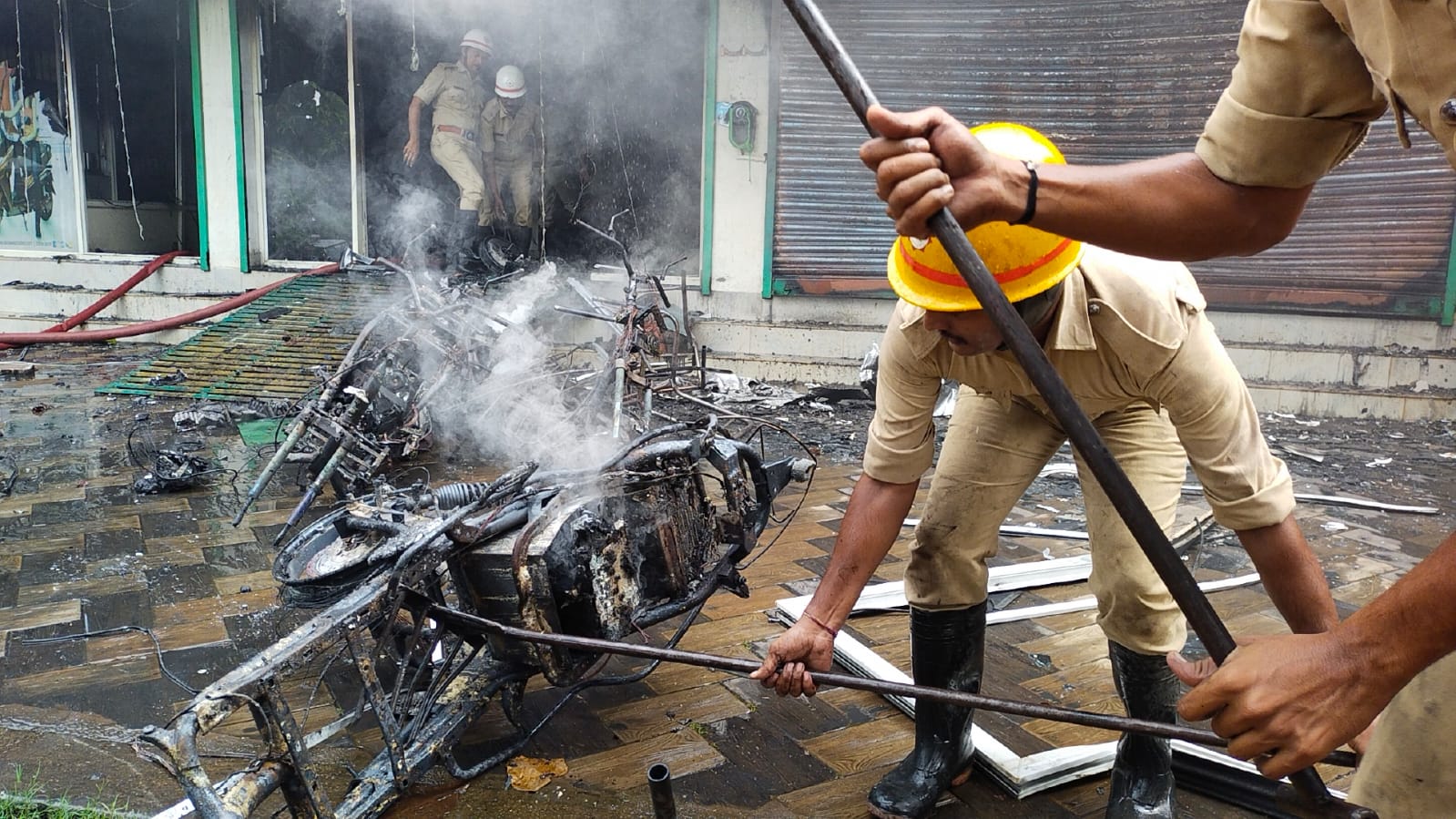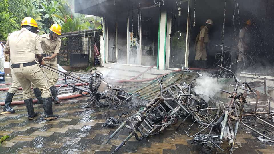 ಅಗ್ನಿಶಾಮಕ ದಳದ ಸಿಬ್ಬಂದಿ ವರ್ಗ ಬೆಂಕಿ ನಂದಿಸುತ್ತಿದ್ದಾರೆ. ಸ್ಥಳಕ್ಕೆ ಪೊಲೀಸರು ತೆರಳಿ ಪರಿಶೀಲನೆ ನಡೆಸುತ್ತಿದ್ದಾರೆ.