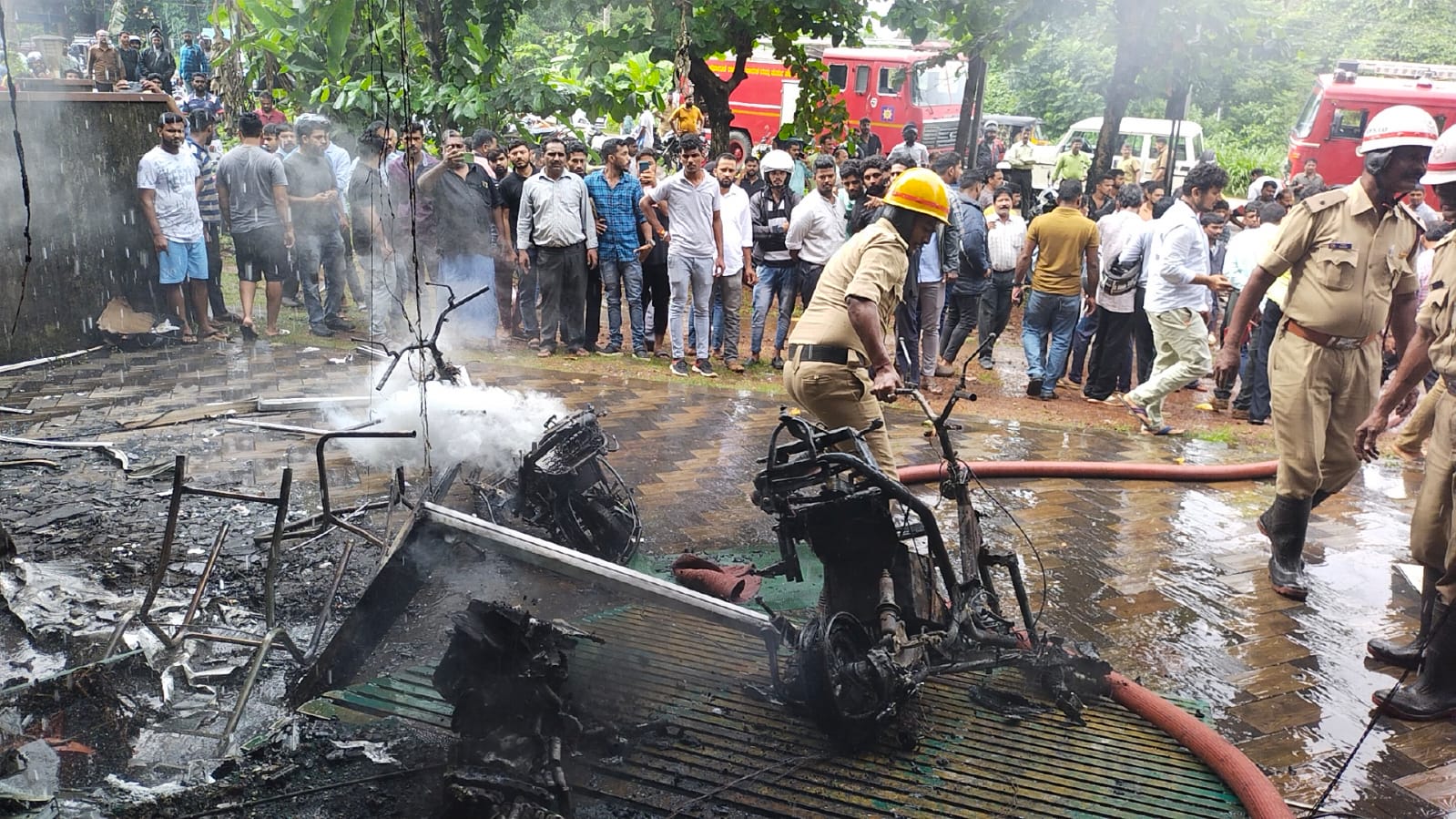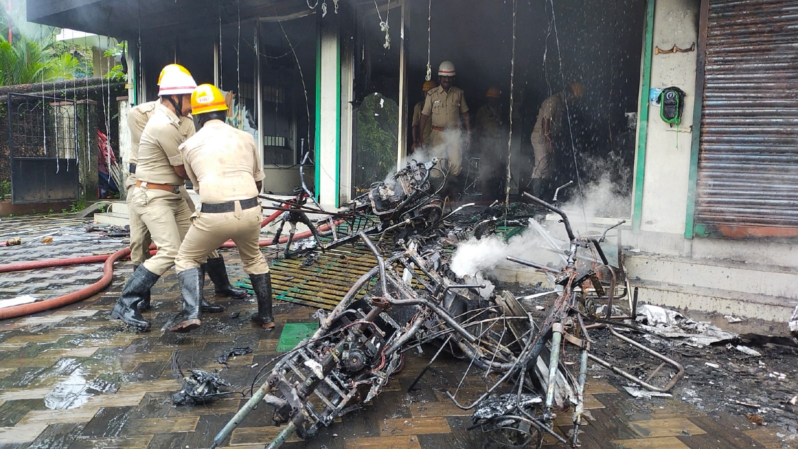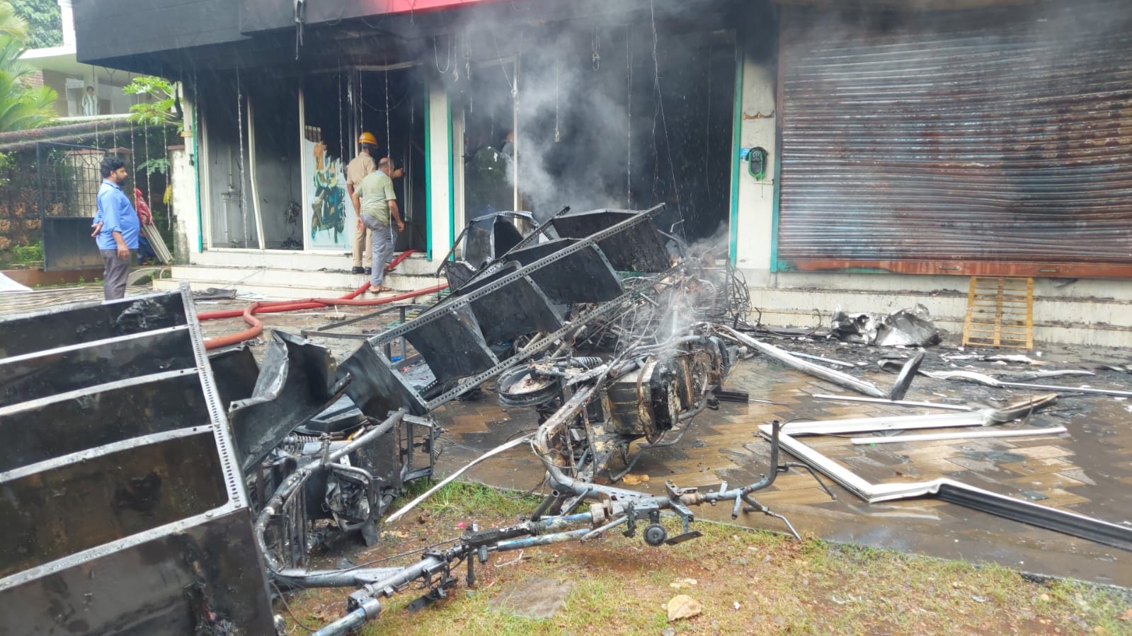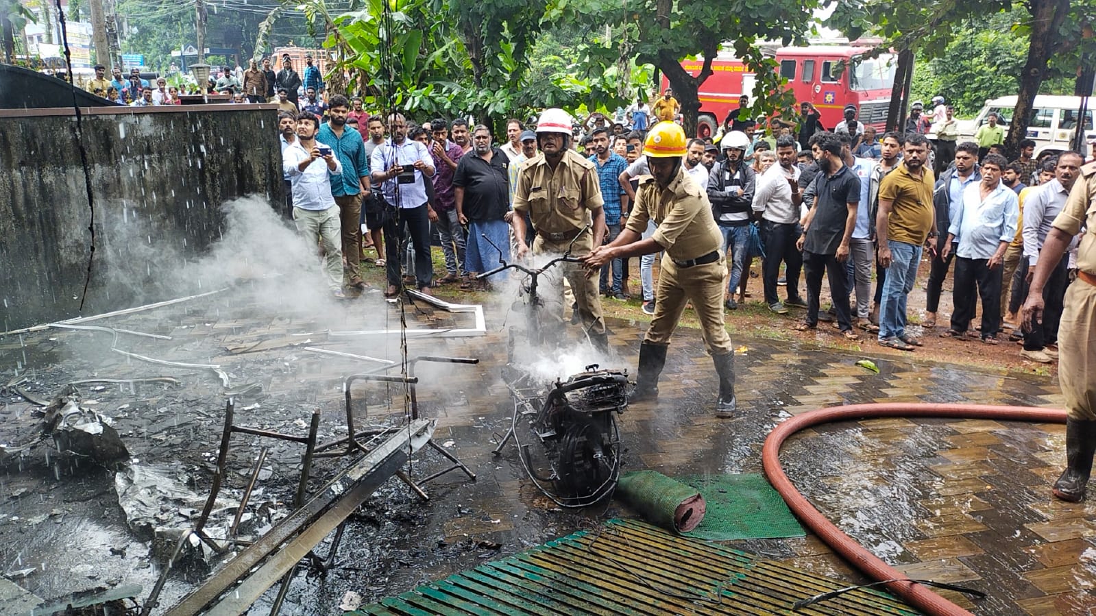 ಅಗ್ನಿಶಾಮಕ ದಳದ ಸಿಬ್ಬಂದಿ ವರ್ಗ ಬೆಂಕಿ ನಂದಿಸುತ್ತಿದ್ದಾರೆ. ಸ್ಥಳಕ್ಕೆ ಪೊಲೀಸರು ತೆರಳಿ ಪರಿಶೀಲನೆ ನಡೆಸುತ್ತಿದ್ದಾರೆ.