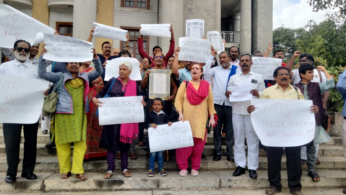 ಗುಜರಾತ್ ಗಲಭೆಯಲ್ಲಿ ಪ್ರಧಾನಿ ನರೇಂದ್ರ ಮೋದಿ ಬಳಗಕ್ಕೆ ಸುಪ್ರೀಂ ಕೋರ್ಟ್ ಕ್ಲೀನ್‌ ಚಿಟ್ ಕೊಟ್ಟ ಹಿನ್ನೆಲೆಯಲ್ಲಿ ಗೃಹ ಸಚಿವ ಅಮಿತ್ ಶಾ ಮತ್ತು ಬಳಗ ಸೇಡಿನ ರಾಜಕಾರಣ ಪ್ರಾರಂಭಿಸಿದೆ. ಸುಳ್ಳು ಆರೋಪದ ಮೇಲೆ ಟೀಸ್ಟಾ ಅವರನ್ನು ವಿಚಾರಣೆ ಹೆಸರಲ್ಲಿ ಕಸ್ಟಡಿಗೆ ತೆಗೆದುಕೊಂಡಿದೆ. ಇದು ಘೋರ ಅನ್ಯಾಯ. ಸರ್ವಾಧಿಕಾರಿ ದಬ್ಬಾಳಿಕೆ ಎಂದು ಹೋರಾಟಗಾರರು ಹೇಳಿದರು.