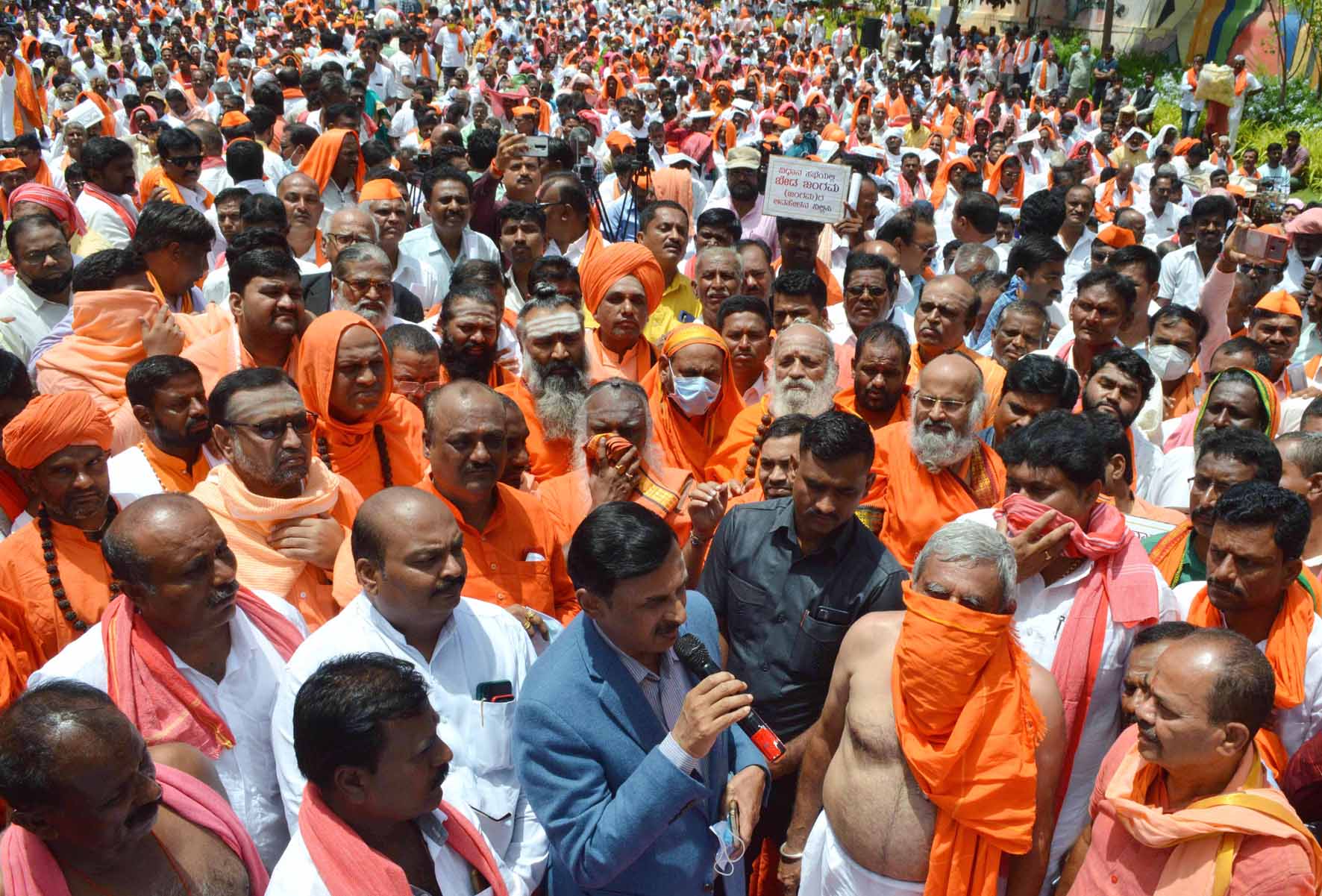ಗುರುವಾರನಗರದ ಫ್ರೀಡಂ ಪಾರ್ಕಿನ ಮೈದಾನದಲ್ಲಿ ಅಖಿಲ ಕರ್ನಾಟಕ ಬೇಡಜಂಗಮ ಸಂಘಟನೆಗಳ ಒಕ್ಕೂಟದ ವತಿಯಿಂದ ‘ಸತ್ಯ ಪ್ರತಿಪಾದನಾ ಸತ್ಯಾಗ್ರಹ’ದಲ್ಲಿ ಬೇಡಜಂಗಮ ಸಮುದಾಯದ ಹಲವು ಸ್ವಾಮೀಜಿಗಳು ಪಾಲ್ಗೊಂಡು ಹಕ್ಕೊತ್ತಾಯ ಮಂಡಿಸಿದರು.