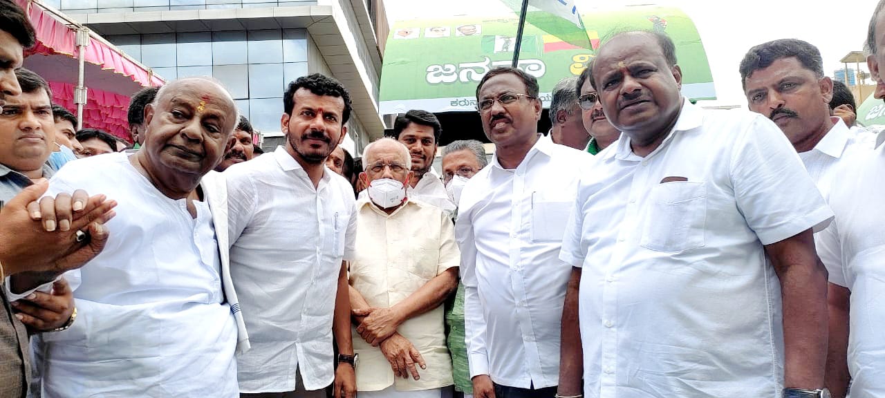 ಶುಕ್ರವಾರ ನಗರದಲ್ಲಿರುವ ಪಕ್ಷದ ಕಚೇರಿ ಜೆಪಿ ಭವನದಲ್ಲಿ ಜನತಾಮಿತ್ರ ಕಾರ್ಯಕ್ರಮಕ್ಕೆ ಚಾಲನೆ ನೀಡಿ ಮಾತನಾಡಿದ ಅವರು, ಬೆಂಗಳೂರಿನಲ್ಲಿ ಕನಿಷ್ಠ ಹದಿನೈದು ಕ್ಷೇತ್ರಗಳನ್ನು ಗೆಲ್ಲುವ ವಾತಾವರಣ ಜೆಡಿಎಸ್ಗೆ ಇದೆ. ವಿಧಾನಸಭೆ ಮತ್ತು ಬಿಬಿಎಂಪಿ ಚುನಾವಣೆಗೆ ಕಾರ್ಯಕರ್ತರು ಸಂಘಟಿತರಾಗಬೇಕು. ಬೆಂಗಳೂರು ಹಂತ ಹಂತವಾಗಿ ಬೆಳೆಯುತ್ತಿದೆ. ಬೆಂಗಳೂರಿನಲ್ಲಿ ನಮ್ಮ ಪಕ್ಷ ಶಕ್ತಿಯುತವಾಗಿಲ್ಲ ಎಂಬ ಭಾವನೆಯನ್ನ ತೆಗೆದುಹಾಕಬೇಕು ಎಂದು ಹೇಳಿದರು.
