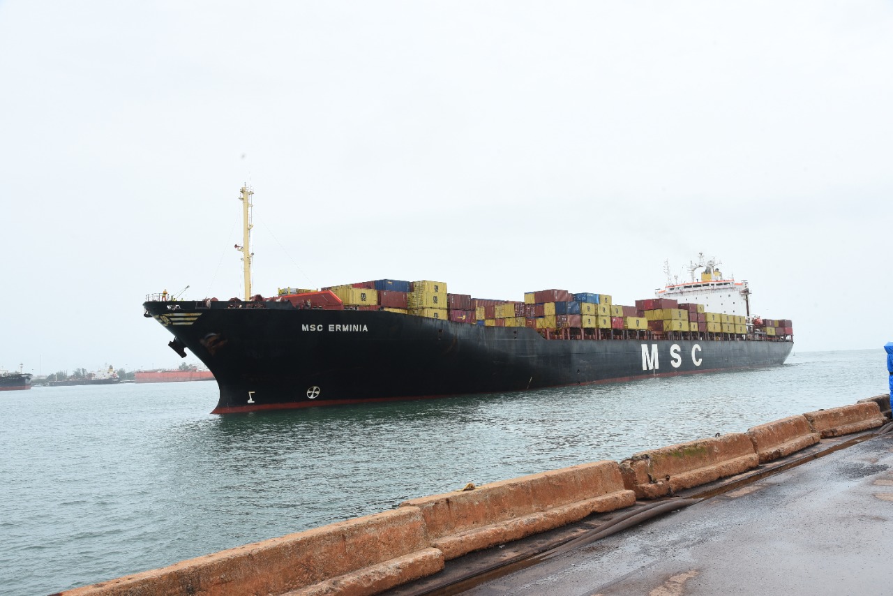 ‘ಎಂ.ಎಸ್.ಸಿ ಎರ್ಮಿನಿಯಾ’ ಹೆಸರಿನ ಹಡಗು ಇದಾಗಿದ್ದು ಕೊಲಂಬಿಯಾದಿಂದ 1265 ಆಮದು ಸರಕು ಪೆಟ್ಟಿಗೆಗಳನ್ನು ಹೊತ್ತು ಮಂಗಳೂರು ಬಂದರಿಗೆ ರವಿವಾರ ತಲುಪಿದೆ.