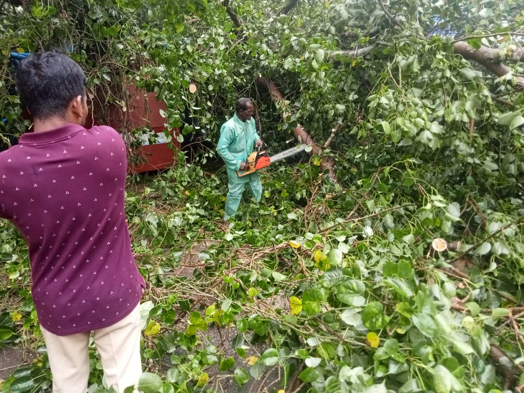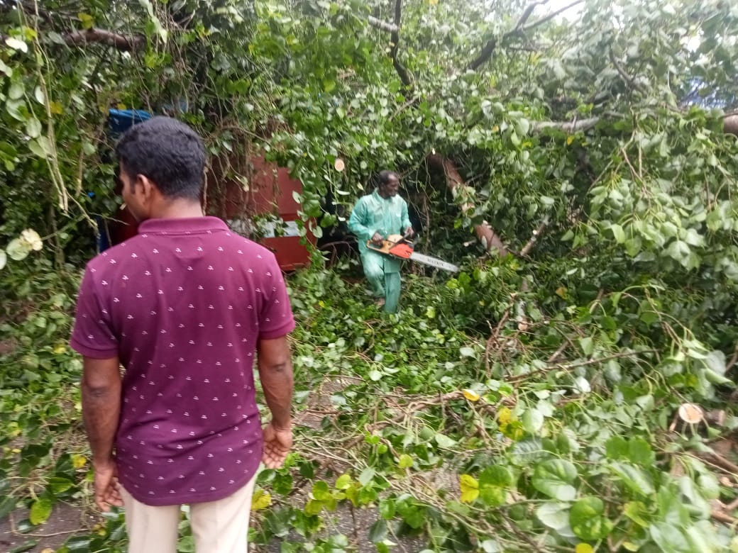ಕಾರ್ಕಳ : ತಾಲೂಕಿನಾದ್ಯಂತ ಬೀಸಿದ ಗಾಳಿ ಮಳೆಗೆ ವಿವಿಧೆಡೆ ಹಾನಿಯುಂಟಾಗಿದೆ. ಬುಧವಾರ ಕಾರ್ಕಳ ನಗರ ಎಸ್ವಿಟಿ ಸರ್ಕಲ್ ಬಳಿಯ ಮರ ಅಂಗಡಿ ಮೇಲೆ ಬಿದ್ದು ಅಪಾರ ಹಾನಿಯಾಗಿದೆ. ಪಾರ್ಕಿಂಗ್ ಮಾಡಲಾದ ಆಟೋ ರಿಕ್ಷಾ, ಬ್ಯಾಗ್ ಅಂಗಡಿ, ವಡಾ ಪಾವ್ ಅಂಗಡಿ ಮೇಲೆ ಮರ ಉರುಳಿ ಬಿದ್ದಿದೆ. ಕೂಡಲೇ ಅರಣ್ಯ ಇಲಾಖೆ, ತಾಲೂಕು ಕಚೇರಿ ಸಿಬ್ಬಂದಿ, ಸ್ಥಳೀಯರು ಆಗಮಿಸಿ ಮರ ತೆರವುಗೊಳಿಸಿರುತ್ತಾರೆ.