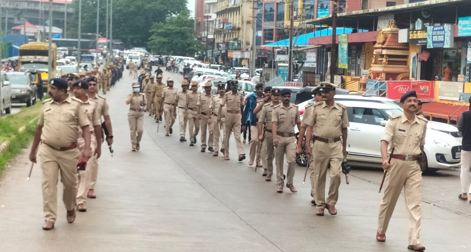 ಮಂಗಳೂರು ನಗರ, ಉಳ್ಳಾಲ, ಸುರತ್ಕಲ್, ಮೂಡುಬಿದಿರೆಯಲ್ಲಿ ಸುರಿಯುವ ಮಳೆಯನ್ನೂ ಲೆಕ್ಕಿಸದೆ ಪೊಲೀಸರು ಪಥ ಸಂಚಲನದ ಮೂಲಕ ಸಾರ್ವಜನಿಕರ ಗಮನ ಸೆಳೆದರು.
