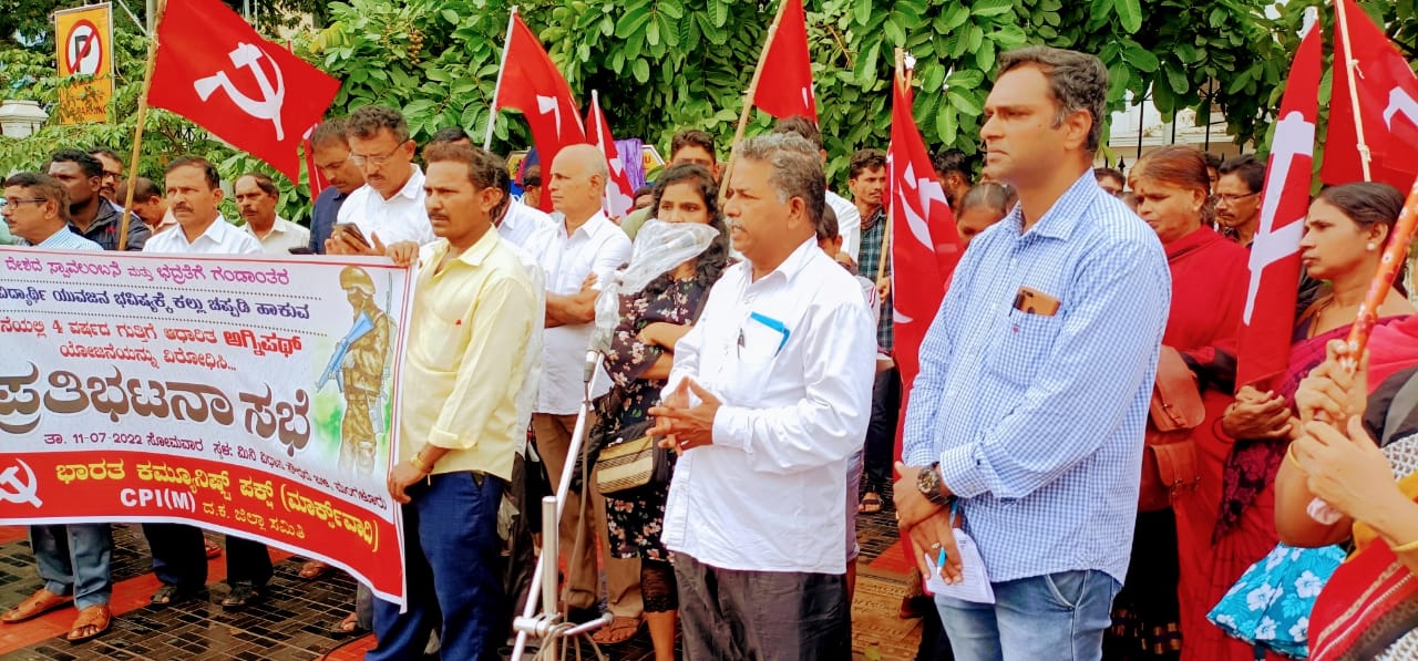 ಮಂಗಳೂರು; ಗುತ್ತಿಗೆ ಆಧಾರಿತ ಅಗ್ನಿಪಥ್ ಯೋಜನೆ ವಿರೋಧಿಸಿ ಸಿಪಿಎಂ ಪ್ರತಿಭಟನೆ