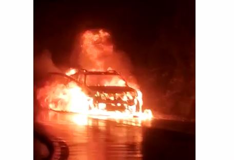 ಚಾರ್ಮಾಡಿ ಘಾಟ್ ರಸ್ತೆಯಲ್ಲಿ ಹೊತ್ತಿ ಉರಿದ ಕಾರು: ಪ್ರಾಣಾಪಾಯದಿಂದ ಪಾರಾದ ಪ್ರಯಾಣಿಕರು