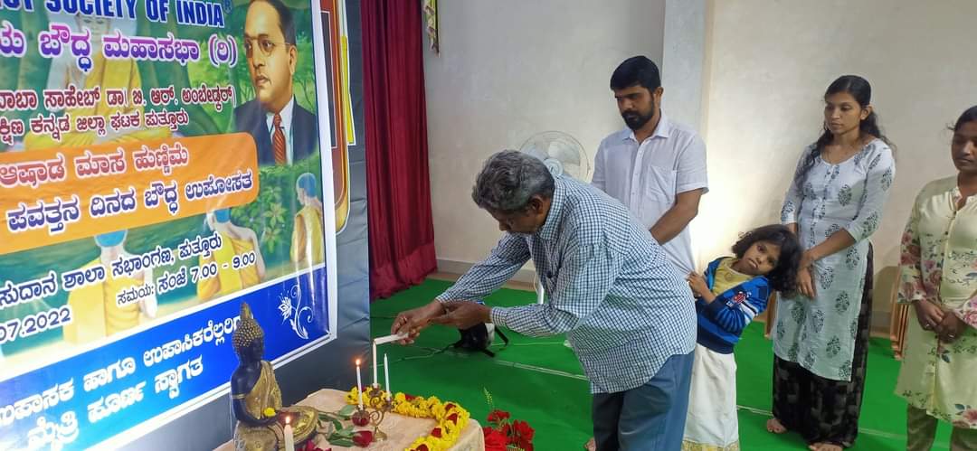 ಪುತ್ತೂರು: ಬುದ್ಧಿಸ್ಟ್ ಸೊಸೈಟಿ ಆಫ್ ಇಂಡಿಯಾ (BSI) ದಕ್ಷಿಣ ಕನ್ನಡ ಜಿಲ್ಲಾ ಘಟಕದ ವತಿಯಿಂದ 'ಧಮ್ಮ ಚಕ್ರ ಪ್ರವರ್ತನ' ದಿನವಾದ ಆಷಾಡ ಹುಣ್ಣಿಮೆಯನ್ನು (ಗುರು ಪೂರ್ಣಿಮೆ) ಪುತ್ತೂರಿನಲ್ಲಿ ಬುಧವಾರ ಆಚರಿಸಲಾಯಿತು.