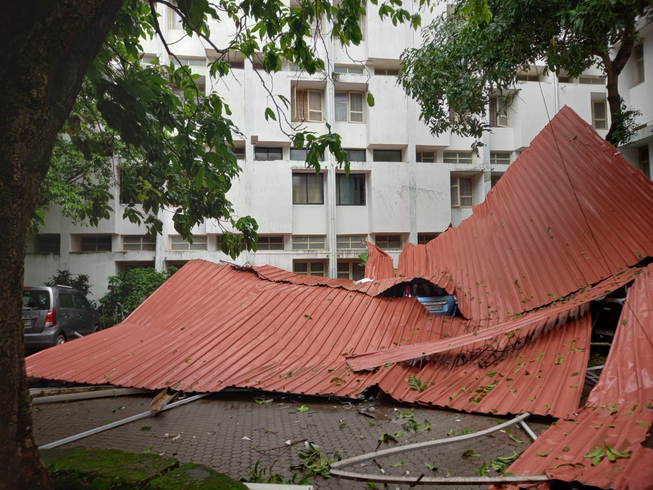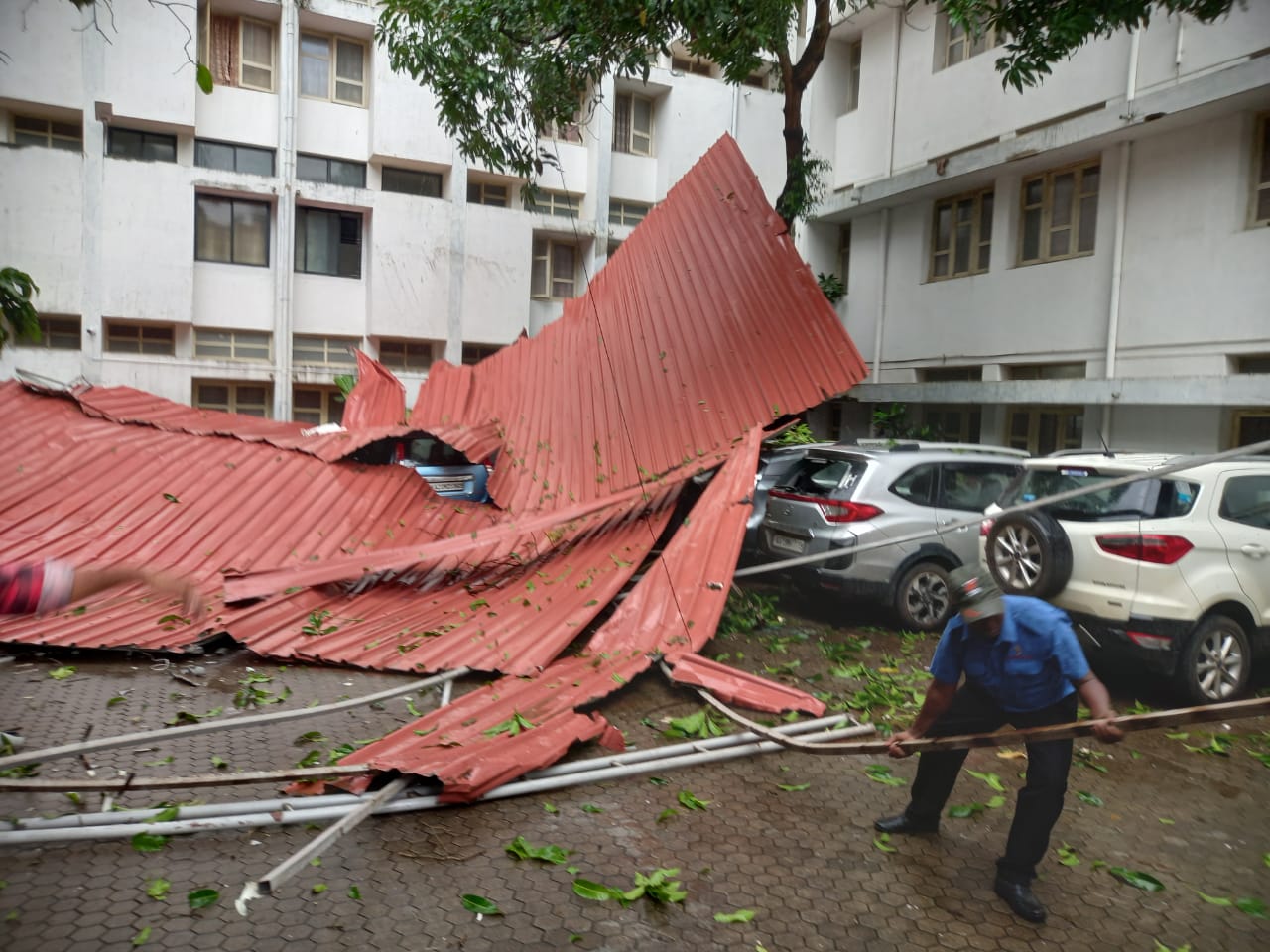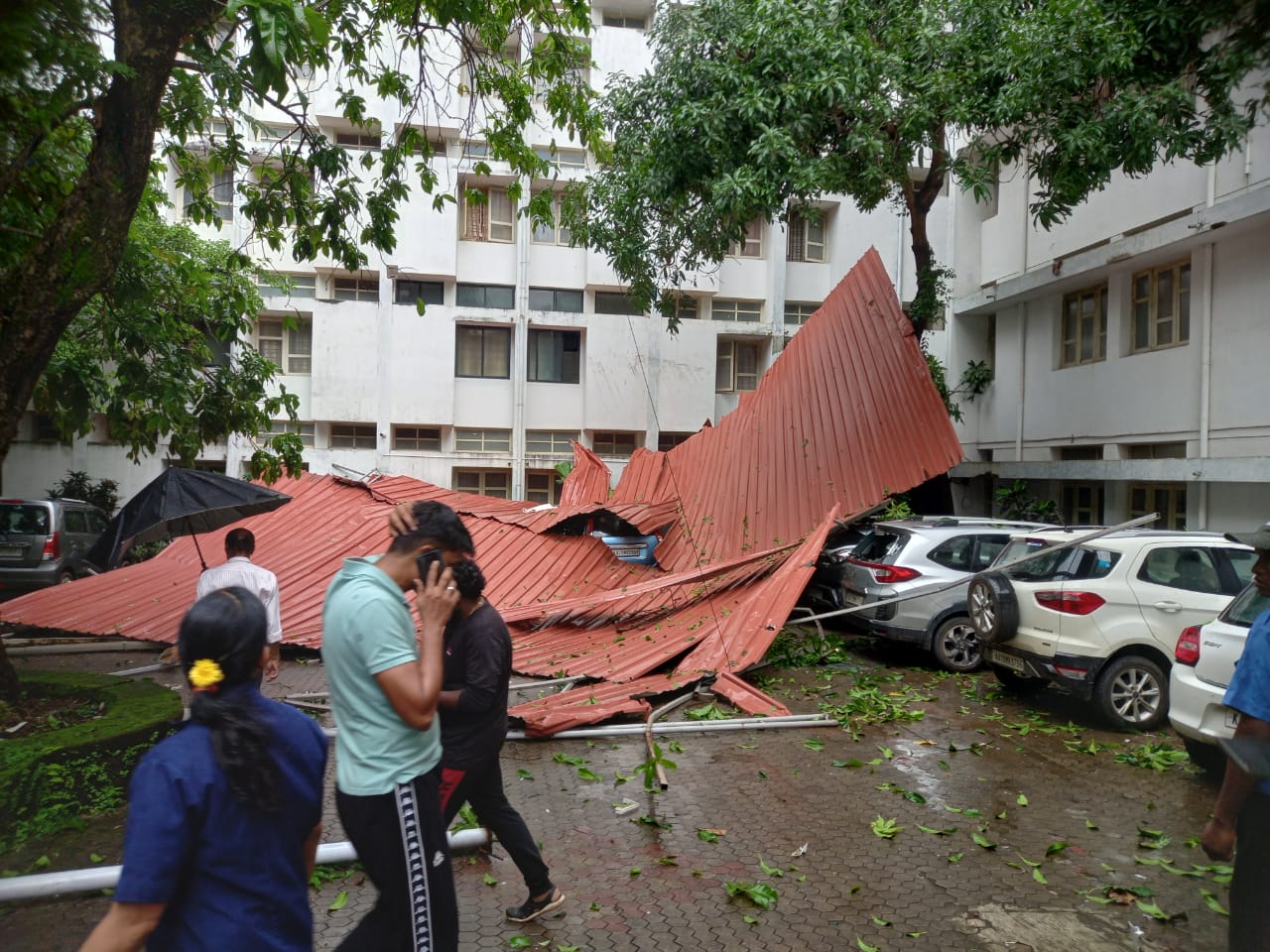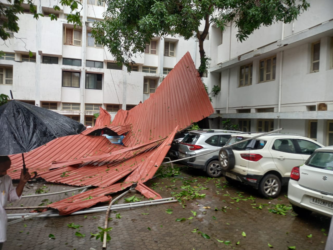 ಭಾರೀ ಗಾಳಿಯೊಂದಿಗೆ ಸುರಿದ ಮಳೆಗೆ ಶೀಟು ಹಾರಿ ಬಿದ್ದಿದ್ದು, ಅಲ್ಲಿ ನಿಲ್ಲಿಸಿದ್ದ ಆರು ಕಾರುಗಳಿಗೆ ಹಾನಿಯಾಗಿದೆ. ಘಟನೆಯಿಂದ ಯಾವುದೇ ಪ್ರಾಣಹಾನಿಯಾಗಿಲ್ಲ.