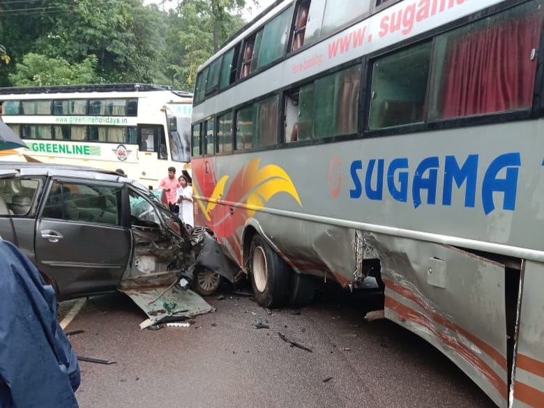 ಧರ್ಮಸ್ಥಳ ಮೂಲದವರಿದ್ದ ಇನ್ನೋವಾ ಕಾರು ಹಾಗೂ ಬೆಂಗಳೂರಿನಿಂದ ಪಂಜ ಮಾರ್ಗವಾಗಿ ಕಡಬಕ್ಕೆ ಬರುತ್ತಿದ್ದ ಸುಗಮ ಸಂಸ್ಥೆಗೆ ಸೇರಿದ ಖಾಸಗಿ ಬಸ್ ನಡುವೆ ಕೋಡಿಂಬಾಳ ತಿರುವಿನಲ್ಲಿ ಅಪಘಾತ ಸಂಭವಿಸಿದೆ.