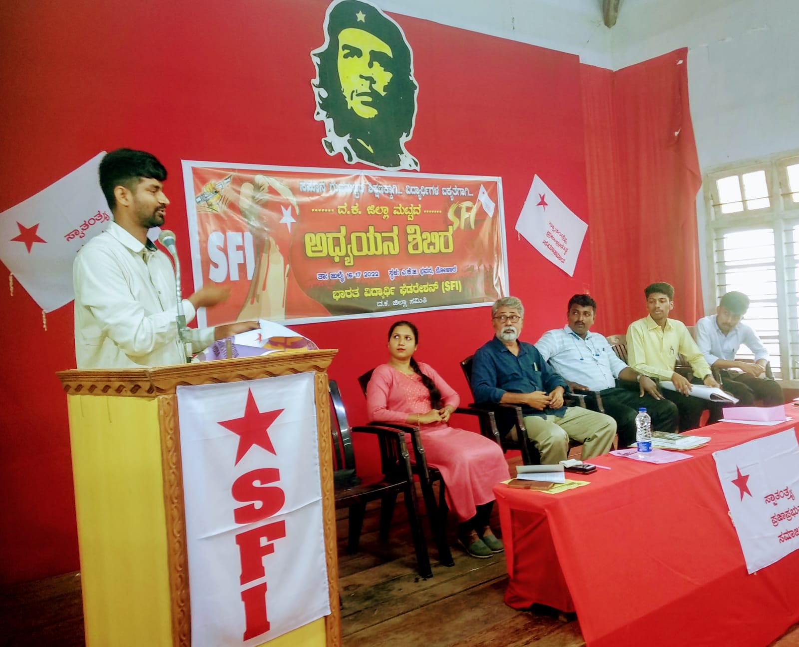 ಸಮಾನ ಗುಣಮಟ್ಟದ ಶಿಕ್ಷಣಕ್ಕಾಗಿ ಮತ್ತು ವಿದ್ಯಾರ್ಥಿಗಳ ಐಕ್ಯತೆಗಾಗಿ ಭಾರತ ವಿದ್ಯಾರ್ಥಿ ಫೆಡರೇಶನ್ (ಎಸ್ಎಫಐ) ದ.ಕ.ಜಿಲ್ಲಾ ಸಮಿತಿಯು ನಗರದ ಬೋಳಾರದ ಎಕೆಜಿ ಭವನದಲ್ಲಿ ಆಯೋಜಿಸಿರುವ ಜಿಲ್ಲಾ ಮಟ್ಟದ ಅಧ್ಯಯನ ಶಿಬಿರವನ್ನು ಶನಿವಾರ ಉದ್ಘಾಟಿಸಿ ಅವರು ಮಾತನಾಡಿದರು.