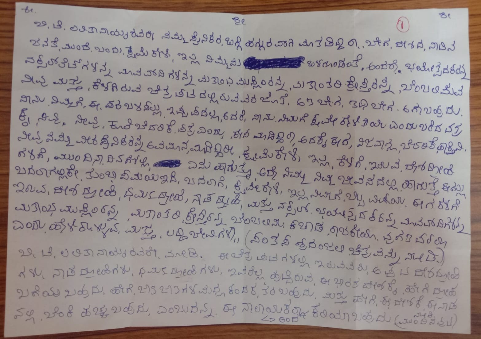 ಪತ್ರದಲ್ಲಿ ಜೈ ಶ್ರೀರಾಮ್, ಭಾರತ ಮಾತೆ, ಕರ್ನಾಟಕ ಮಾತೆ ಎಂದು ಬರೆದಿದ್ದಾರೆ. ಯಾರು ಮುಸ್ಲಿಮರ ಪರವಾಗಿ ಮಾತನಾಡುತ್ತಾರೋ ಅಂತವರು ರಕ್ತ ಹೀರುವವರು ಎಂದು ಉಲ್ಲೇಖಿಸಲಾಗಿದೆ.