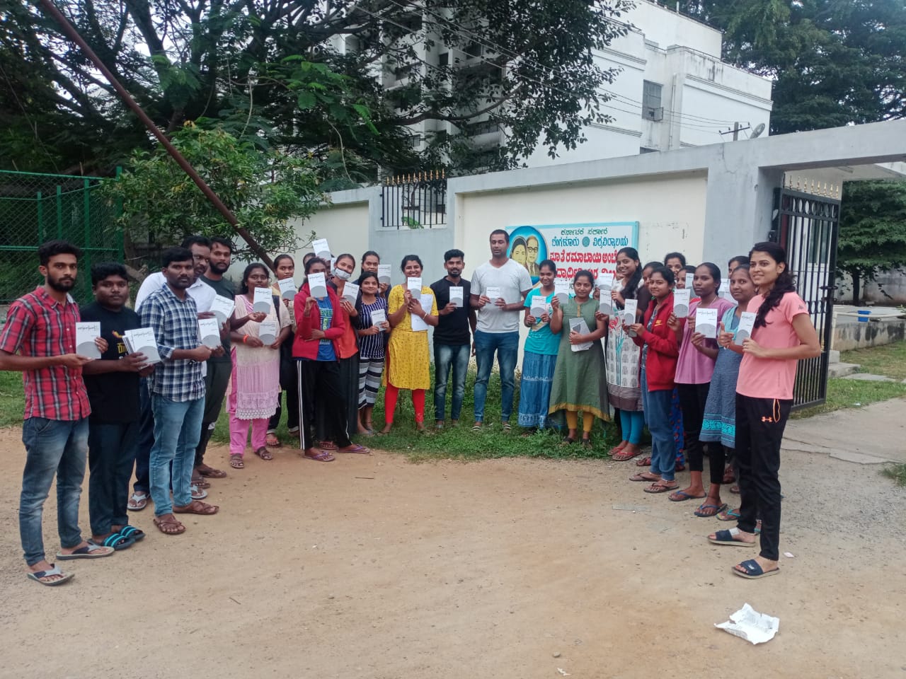 ಕಾರ್ಯಕ್ರಮದ ಅಂಗವಾಗಿ ಬೆಂಗಳೂರು ವಿಶ್ವವಿದ್ಯಾಲಯದ ಸ್ನಾತಕೋತ್ತರ ಮತ್ತು ಸಂಶೋಧನಾ ವಿದ್ಯಾರ್ಥಿಗಳ ಹಾಸ್ಟೆಲ್ನಲ್ಲಿ ಉಚಿತವಾಗಿ ವಿದ್ಯಾರ್ಥಿಗಳಿಗೆ ಪುಸ್ತಕಗಳನ್ನು ಹಂಚಲಾಯಿತು. ಪುಸ್ತಕವನ್ನು ಬೆಂಗಳೂರು ವಿವಿ ಸೇರಿದಂತೆ ಎಲ್ಲಾ ವಿವಿಗಳಲ್ಲಿಯೂ ಹಂಚಿ ವಿದ್ಯಾರ್ಥಿಗಳಿಗೆ ಆರೆಸ್ಸೆಸ್ ಅಜೆಂಡಾವನ್ನು ವಿಫಲಗೊಳಿಸಲಾಗುವುದು ಎಂದು ಸಂವಾದದಲ್ಲಿ ಭಾಗವಹಿಸಿದ್ದ ವಿದ್ಯಾರ್ಥಿಗಳು ಘೋಷಿಸಿದರು.