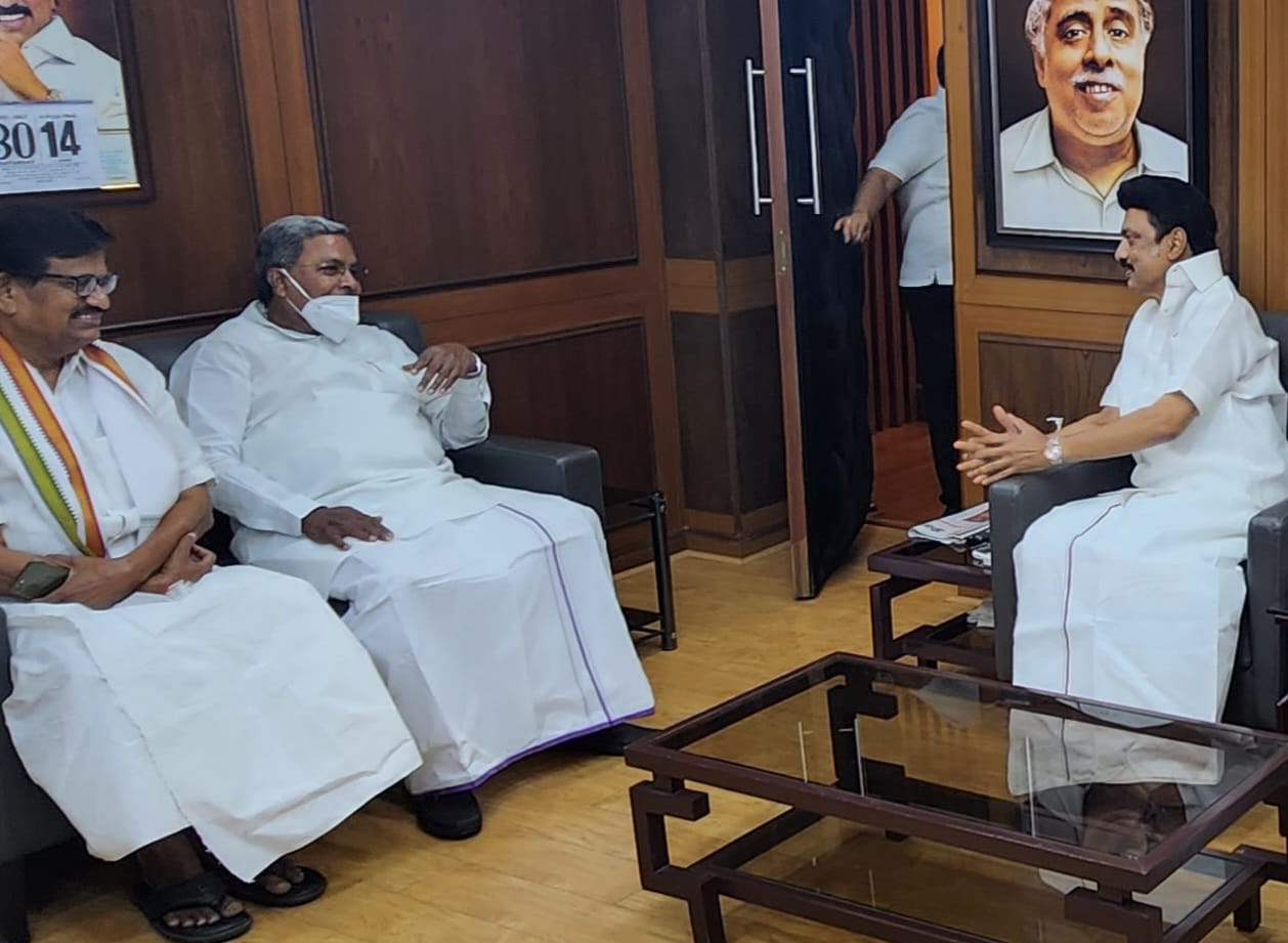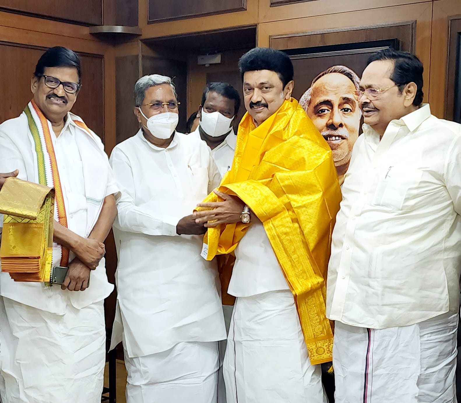 ತಮಿಳುನಾಡು ಮುಖ್ಯಮಂತ್ರಿ ಎಂ.ಕೆ ಸ್ಟಾಲಿನ್ ಭೇಟಿಯಾದ ಸಿದ್ದರಾಮಯ್ಯ