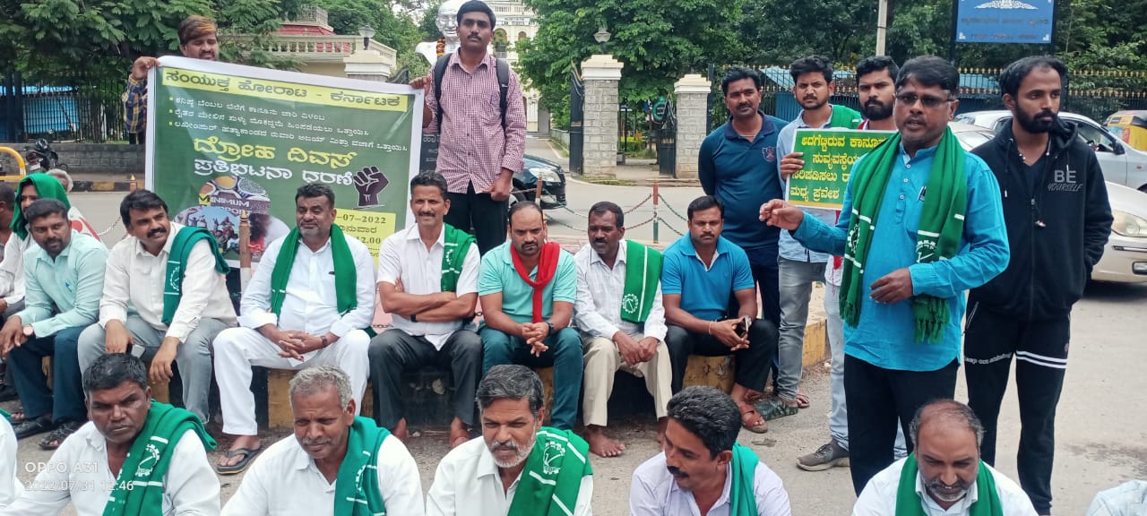 ಮೈಸೂರಿನಲ್ಲಿ ರೈತರಿಂದ 'ದ್ರೋಹ ದಿವಸ್' ಪ್ರತಿಭಟನಾ ಧರಣಿ