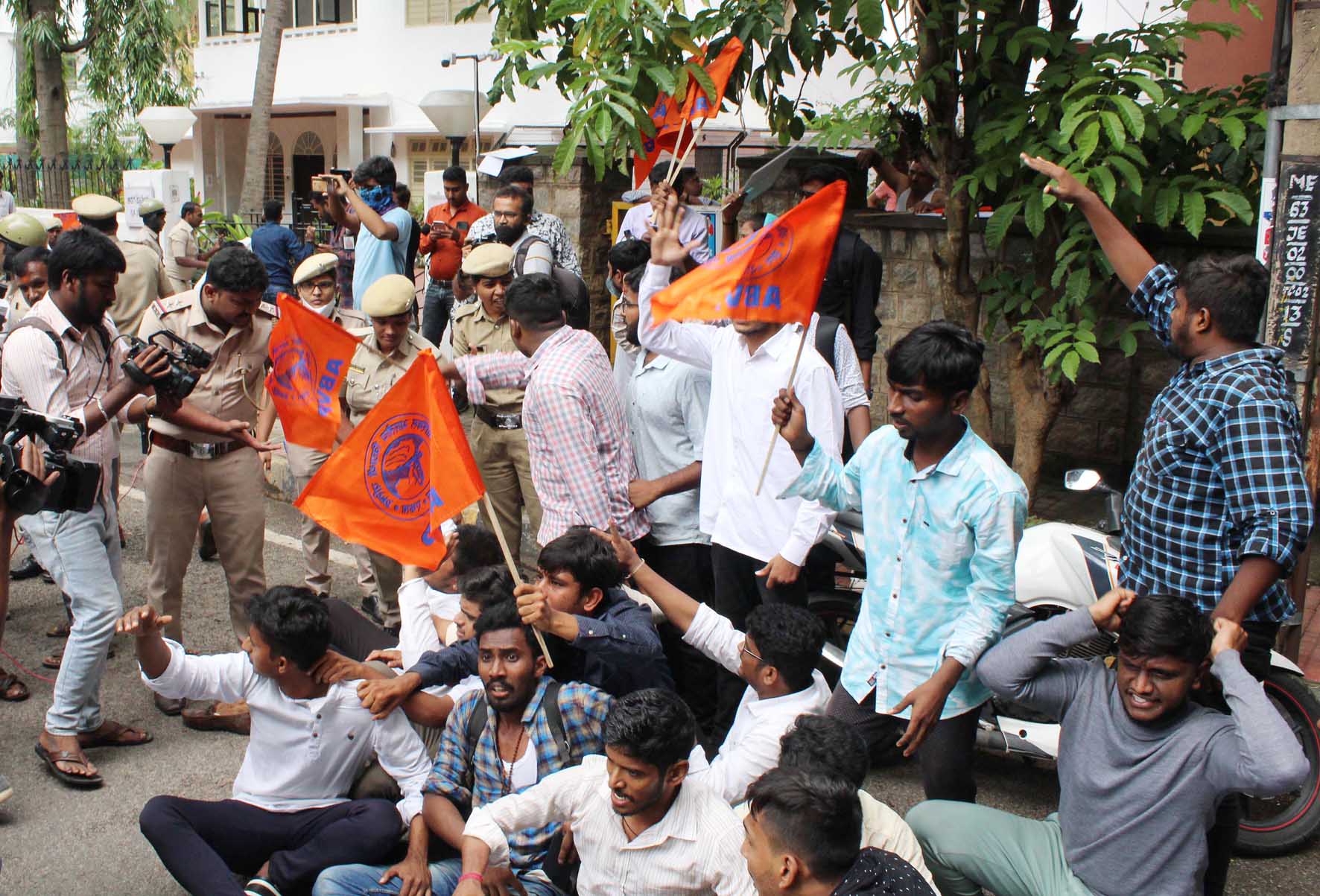 ಗೃಹ ಸಚಿವರ ನಿವಾಸದ ಬಳಿ ಸಿಎಆರ್ ಪೊಲೀಸರು ಸೇರಿ ಐವರಿಂದ ಮಾತ್ರ ಭದ್ರತೆಯಿತ್ತು. ಇದೇ ವೇಳೆ, ಗೃಹ ಸಚಿವರ ನಿವಾಸಕ್ಕೆ ಎಬಿವಿಪಿ ಕಾರ್ಯಕರ್ತರು ಮುತ್ತಿಗೆ ಹಾಕಿದ್ದಾರೆ. ವಿದ್ಯಾರ್ಥಿಗಳ ಪ್ರತಿಭಟನೆ ಬಗ್ಗೆ ಸಿಎಆರ್ ಕಾನ್ಸ್ಟೇಬಲ್ ಜೆಸಿ ನಗರ ಠಾಣೆಗೆ ಮಾಹಿತಿ ನೀಡಿದ ಮೇಲೆ ಪೊಲೀಸರು ಎಚ್ಚರವಾಗಿದ್ದಾರೆ.