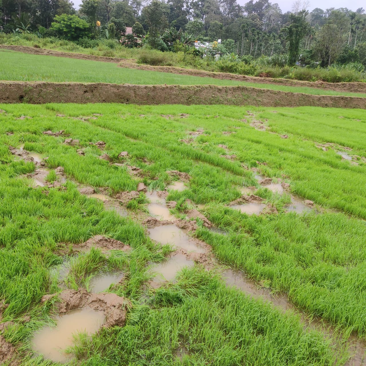 ಇಂದು ಬೆಳೆಗಾರರಾದ ಅಂಚೆಮನೆ ಸುಧಿ ಹಾಗೂ ಆದರ್ಶ ಅವರುಗಳ ಗದ್ದೆಗಳಿಗೆ ನುಗ್ಗಿದ ಆನೆಗಳ ಹಿಂಡು ಸಾಕಷ್ಟು ಹಾನಿ ಮಾಡಿದೆ. 15 ದಿನಗಳ ಹಿಂದೆಯಷ್ಟೇ ಭತ್ತದ ಬಿತ್ತನೆ ಮಾಡಿದ್ದು, ಮುಂದಿನವಾರ ನಾಟಿ ಮಾಡಲು ತಯಾರಿ ನಡೆಸುತ್ತಿರುವಾಗಲೇ ಎಲ್ಲವೂ ಆನೆ ಪಾಲಾಗಿದೆ. ಅಂಚೆಮನೆ ಕುಟುಂಬಕ್ಕೆ ಸೇರಿದ ಕಾಫಿ ಮತ್ತು ಅಡಿಕೆ ತೋಟಕ್ಕೂ ಹಾನಿಯಾಗಿದ್ದು, ಅಡಿಕೆ ಗಿಡಗಳು ನೆಲಸಮವಾಗಿವೆ ಎಂದು ಬೆಳೆಗಾರರು ಬೇಸರ ವ್ಯಕ್ತಪಡಿಸಿದ್ದಾರೆ.