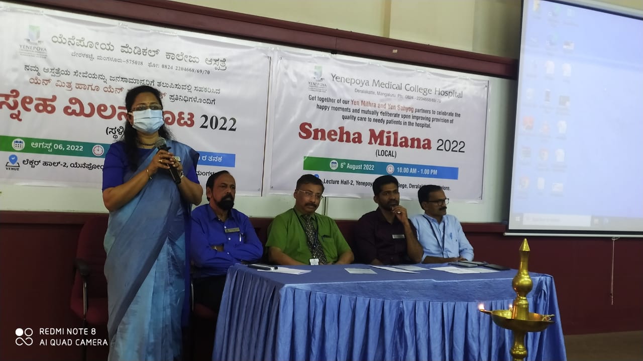 ಅವರು ಯೆನೆಪೊಯ ಮೆಡಿಕಲ್ ಕಾಲೇಜು ಆಸ್ಪತ್ರೆ ಇದರ ಆಶ್ರಯದಲ್ಲಿ ಯೆನೆಪೊಯ ಲೆಕ್ಚರ್ ಹಾಲ್ ನಲ್ಲಿ ನಡೆದ ಸ್ನೇಹ ಮಿಲನ ಕಾರ್ಯಕ್ರಮ ಉದ್ಘಾಟಿಸಿ ಮಾತನಾಡಿದರು.