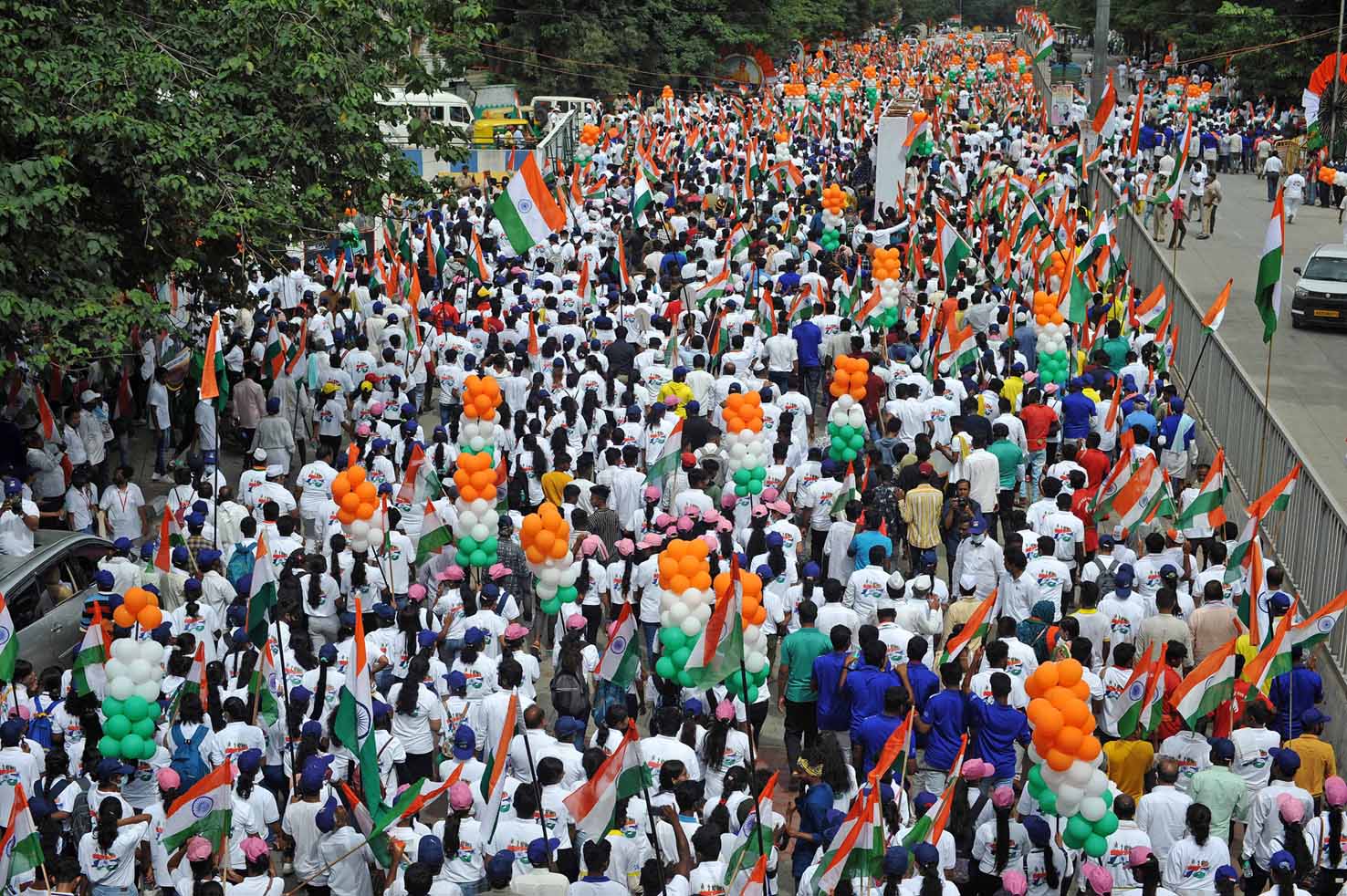 ಬೆಂಗಳೂರು, ಆ.15: ದೇಶದ ಸ್ವಾತಂತ್ರ್ಯದ ಅಮೃತ ಮಹೋತ್ಸವದ ಅಂಗವಾಗಿ ಕಾಂಗ್ರೆಸ್ (Congress) ಪಕ್ಷದ ನೇತೃತ್ವದಲ್ಲಿ ಹಮ್ಮಿಕೊಂಡಿದ್ದ ‘ಸ್ವಾತಂತ್ರ್ಯದ ನಡಿಗೆ’ಯಲ್ಲಿ ಸುಮಾರುಒಂದು ಲಕ್ಷಕ್ಕೂ ಹೆಚ್ಚು ಮಂದಿ ಭಾಗವಹಿಸಿದ್ದರು. ಸೋಮವಾರ ಮಧ್ಯಾಹ್ನ 2 ಗಂಟೆ ಸುಮಾರಿಗೆ ನಗರದ ಮೆಜೆಸ್ಟಿಕ್ ಬಳಿಯಿರುವ ಕ್ರಾಂತಿವೀರ ಸಂಗೊಳ್ಳಿ ರಾಯಣ್ಣ ವೃತ್ತದಿಂದ ಆರಂಭವಾದ ನಡಿಗೆಯು ಸಂಜೆ 5 ಗಂಟೆ ವೇಳೆಗೆ ಬಸವನಗುಡಿ ನ್ಯಾಷನಲ್‍ ಕಾಲೇಜಿನವರೆಗೆ ಸಾಗಿ ಸಮಾರೋಪಗೊಂಡಿತು.