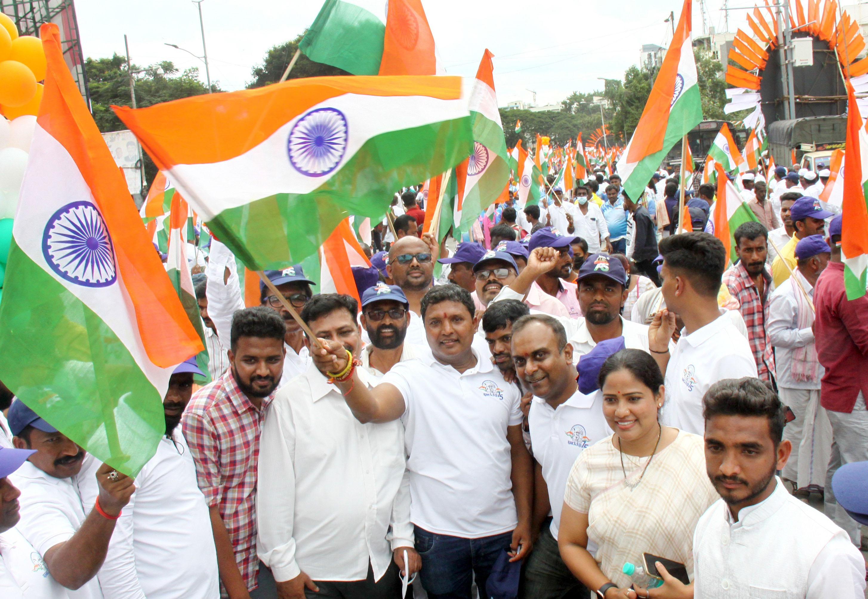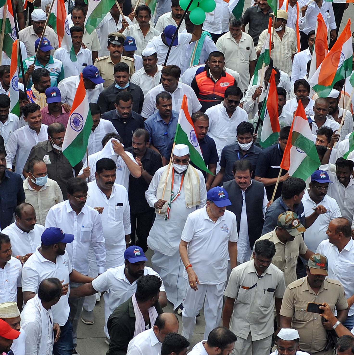 ರಾಜ್ಯಕಾಂಗ್ರೆಸ್‍ ಉಸ್ತುವಾರಿ ರಣದೀಪ್ ಸಿಂಗ್ ಸುರ್ಜೆವಾಲ, ಕೆಪಿಸಿಸಿ ಅಧ್ಯಕ್ಷ  ಡಿ.ಕೆ.ಶಿವಕುಮಾರ್, ವಿಧಾನಸಭೆ ವಿರೋಧ ಪಕ್ಷದ ನಾಯಕ ಸಿದ್ದರಾಮಯ್ಯ, ಉಪ ನಾಯಕಯು.ಟಿ.ಖಾದರ್, ವಿಧಾನಪರಿಷತ್ ಪ್ರತಿಪಕ್ಷ ನಾಯಕ ಬಿ.ಕೆ.ಹರಿಪ್ರಸಾದ್, ಕೆಪಿಸಿಸಿ ಕಾರ್ಯಾಧ್ಯಕ್ಷರು, ಶಾಸಕರು, ವಿಧಾನಪರಿಷತ್ ಸದಸ್ಯರು, ಕಾಂಗ್ರೆಸ್ ಮುಖಂಡರು, ಕಾರ್ಯಕರ್ತರು ರಾಷ್ಟ್ರಧ್ವಜವನ್ನು ಹಿಡಿದುಕೊಂಡು ಪಾದಯಾತ್ರೆಯಲ್ಲಿ ಹೆಜ್ಜೆ ಹಾಕಿದರು.