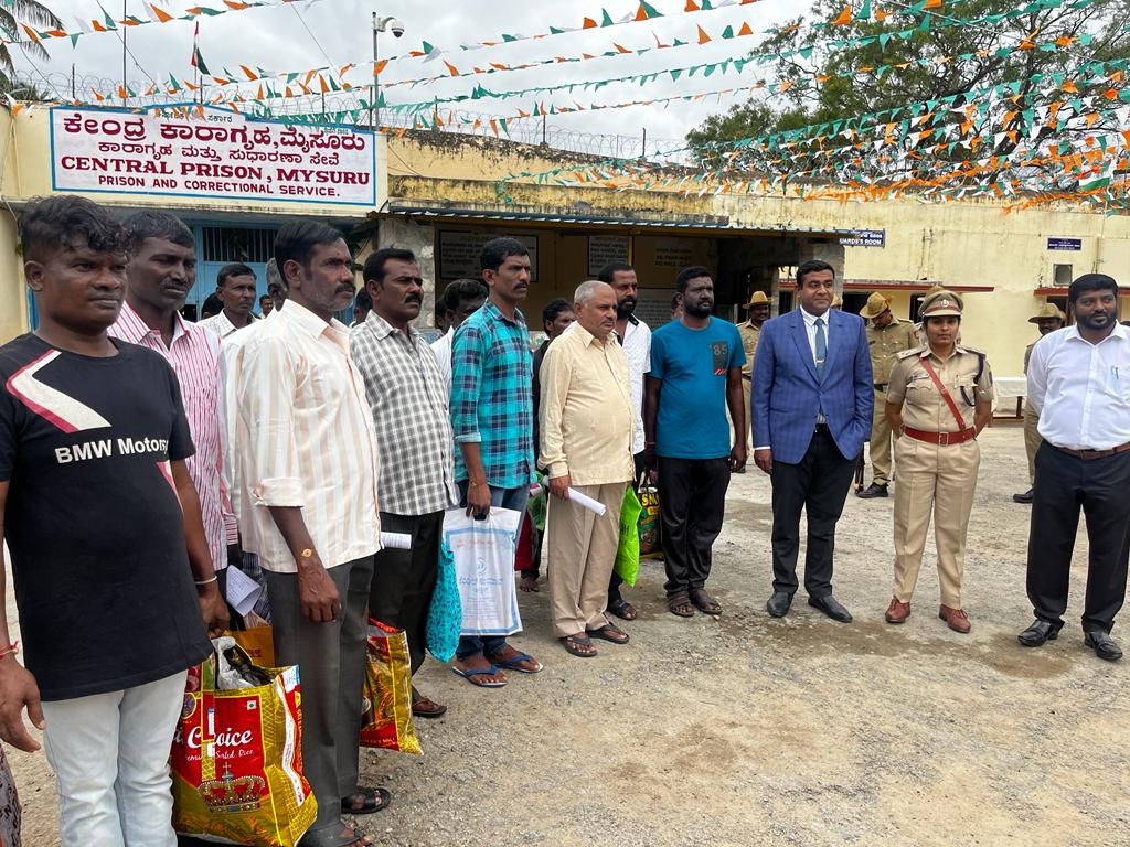 ಮೈಸೂರು,ಆ.15: 75ನೇ ಸ್ವಾತಂತ್ರ್ಯ ದಿನಾಚರಣೆಯ ಆಝಾದಿ ಕಾ ಅಮೃತ ಮಹೋತ್ಸವದ ಅಂಗವಾಗಿ ಕೇಂದ್ರ ಸರ್ಕಾರದ ಮಾರ್ಗಸೂಚಿ ಅನ್ವಯ ರಾಜ್ಯ ಸರ್ಕಾರದ ಆದೇಶದ ಮೇಲೆ ಸನ್ನಡತೆಯ ಆಧಾರದ ಮೇಲೆ ಅರ್ಹ ಅಲ್ಪಾವಧಿ ಶಿಕ್ಷಾ ಬಂಧಿಗಳನ್ನು ವಿಶೇಷ ಮಾಫಿಯೊಂದಿಗೆ ಮೊದಲ ಹಂತದಲ್ಲಿ ಇಂದು ಅವಧಿ ಪೂರ್ವವಾಗಿ ಬಿಡುಗಡೆಗೊಳಿಸಲಾಯಿತು.