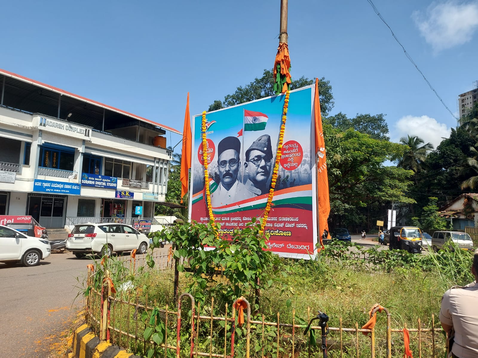 ಬ್ರಹ್ಮಗಿರಿ ಸರ್ಕಲ್ ನಲ್ಲಿ ಸಾವರ್ಕರ್ ಫ್ಲೆಕ್ಸ್ ವಿವಾದ; ಬಿಜೆಪಿ ಮುಖಂಡರಿಂದ ಭಾವಚಿತ್ರಕ್ಕೆ ಮಾಲಾರ್ಪಣೆ