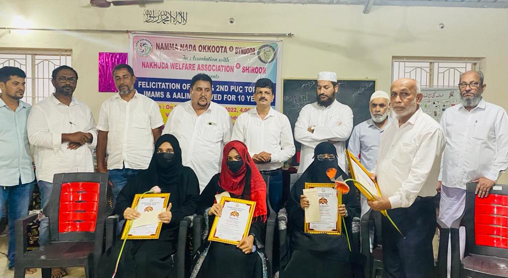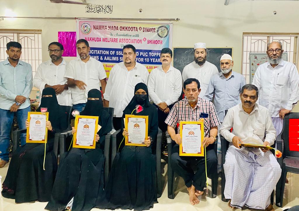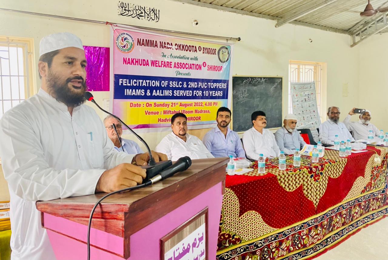 ಬೈಂದೂರು : ನಮ್ಮ ನಾಡ ಒಕ್ಕೂಟ ಬೈಂದೂರು ತಾಲೂಕು ಘಟಕ ಮತ್ತು ನಾಖುದಾ ವೆಲ್ಫೇರ್ ಅಸೊಸಿಯೇಶನ್ ಶಿರೂರು ಇವುಗಳ ಜಂಟಿ ಆಶ್ರಯದಲ್ಲಿ ಎಸೆಸೆಲ್ಸಿ ಮತ್ತು ದ್ವಿತೀಯ ಪಿಯುಸಿ ಪ್ರತಿಭಾವಂತ ವಿದ್ಯಾರ್ಥಿಗಳನ್ನು ಹಾಗೂ ಮಸೀದಿ ಮದ್ರಸಾಗಳಲ್ಲಿ 10 ವರ್ಷಗಳಿಗೂ ಅಧಿಕ ಸೇವೆ ಸಲ್ಲಿಸಿದ ಉಲೆಮಾ ಮತ್ತು ಮುಅಝ್ಝಿನ್ ಅವರ ಸನ್ಮಾನ ಕಾರ್ಯಕ್ರಮವು ಶಿರೂರು ಮಾರ್ಕೆಟ್ನ ಮಿಫ್ತಾಹುಲ್ ಉಲೂಮ್ ಮದ್ರಸದಲ್ಲಿ ಜರಗಿತು.