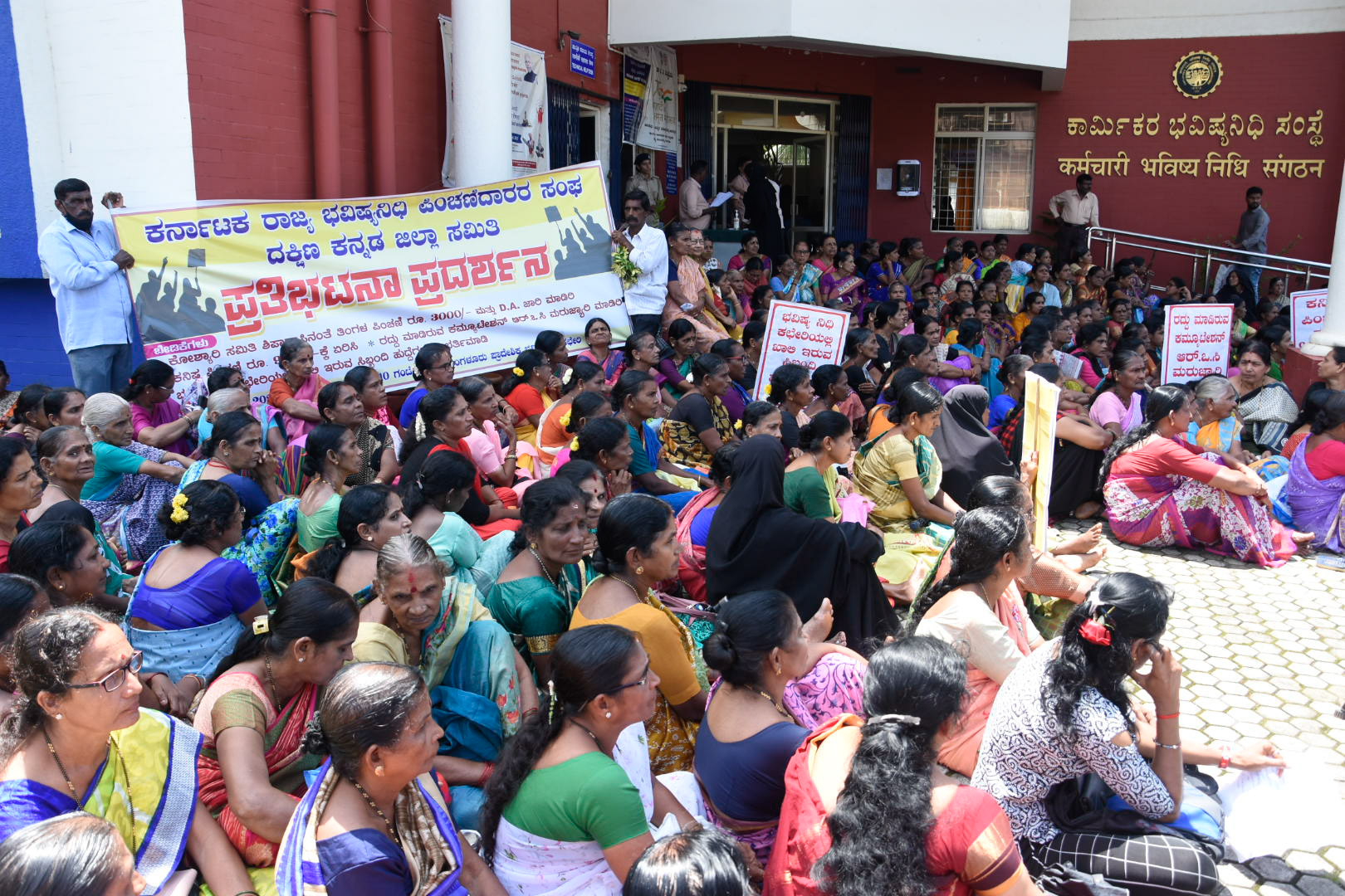 ಮಂಗಳೂರು: ಭವಿಷ್ಯನಿಧಿ ಕಚೇರಿಯ ಮುಂದೆ ಪಿಂಚಣಿದಾರರ ಪ್ರತಿಭಟನೆ
