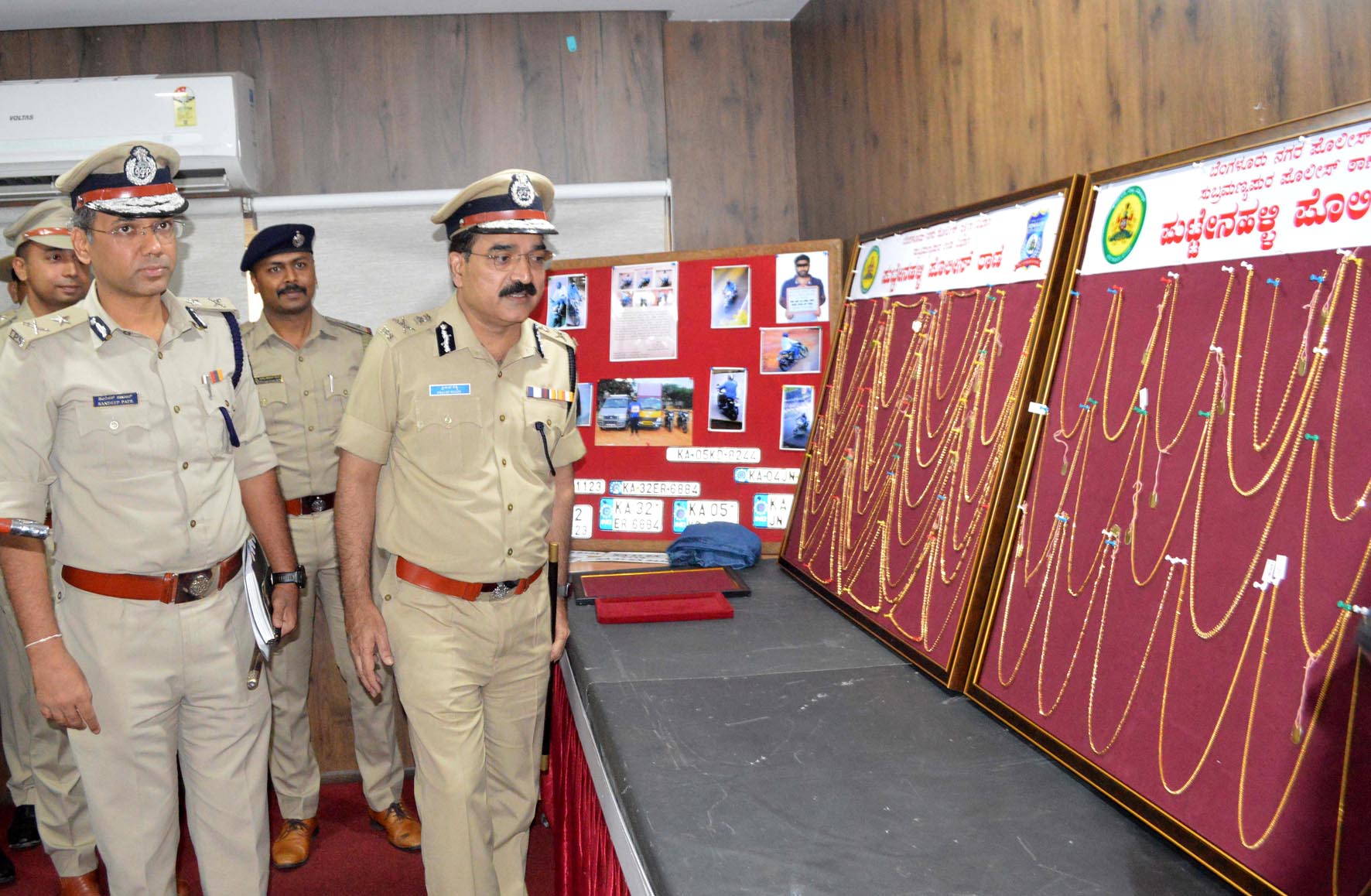 ಬಂಧಿತರನ್ನು ತಮಿಳುನಾಡು ಮೂಲದ ಸಂತೋಷ್(35) ಮತ್ತು ಬೆಂಗಳೂರಿನ ರವಿ(37) ಎಂದು ಗುರುತಿಸಲಾಗಿದೆ. ಆರೋಪಿಗಳಿಂದ 2.5 ಕೆಜಿ ತೂಕದ 51 ವಿವಿಧ ಚಿನ್ನದ ಸರಗಳು, ಎರಡು ದ್ವಿಚಕ್ರ ವಾಹನಗಳು, ಎರಡು ನಾಲ್ಕು ಚಕ್ರದ ವಾಹನಗಳನ್ನು ವಶಪಡಿಸಿಕೊಳ್ಳುವಲ್ಲಿ ಪೊಲೀಸರು ಯಶಸ್ವಿಯಾಗಿದ್ದಾರೆ.