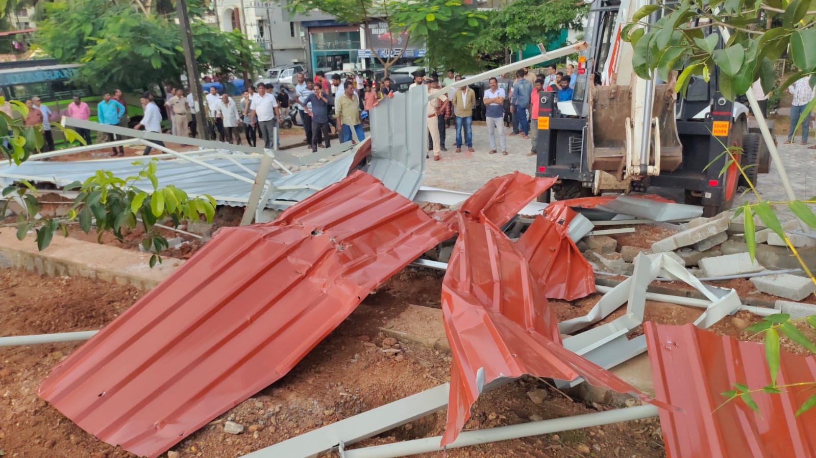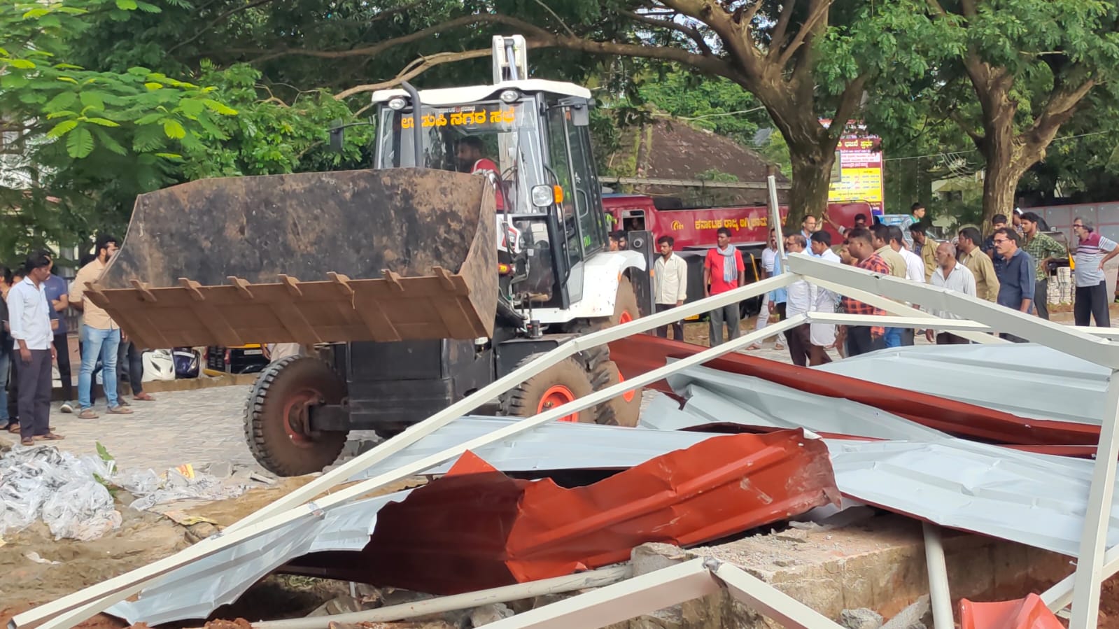 ಆದರೆ ನಿರ್ಮಾಣದ ಆರಂಭಿಕ ಹಂತದಲ್ಲಿರುವಾಗಲೇ ನಗರಸಭೆಯ ಅಧಿಕಾರಿಗಳು ಜೆಸಿಬಿ ಬಳಸಿ ಅದನ್ನು ನೆಲಸಮಗೊಳಿಸಿದರು. ಇದು ನಗರಸಭೆ ವಿರುದ್ಧ ಸ್ಥಳೀಯರು ಹಾಗೂ ರಿಕ್ಷಾ ಚಾಲಕರ ಆಕ್ರೋಶಕ್ಕೆ ಕಾರಣವಾಯಿತು.